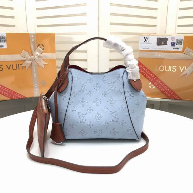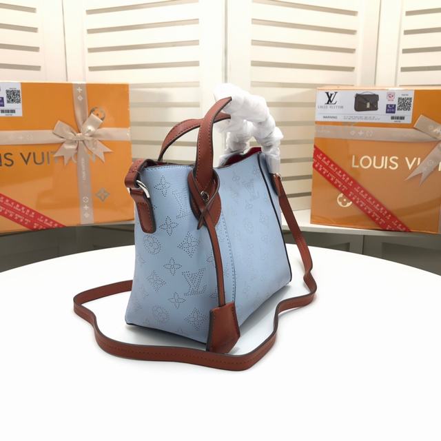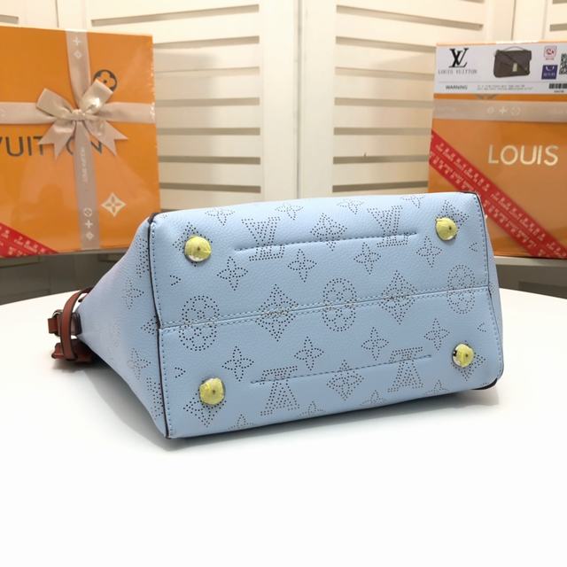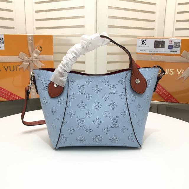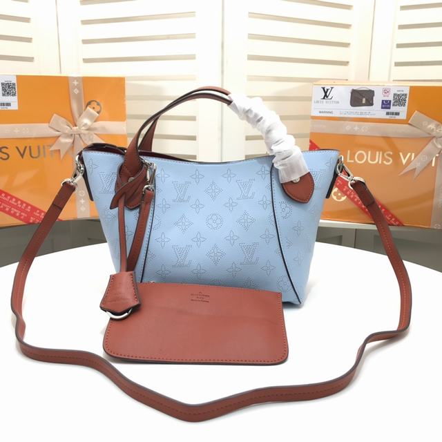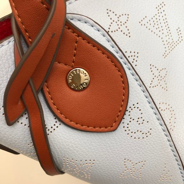 四色手袋M54351 ,54352,採用雙重設計的Hina手袋:包身正中配有彈簧扣,可折疊,可伸展,在Tote手袋與摩登水桶包之間自如切換。由小牛皮裁製而成並採用鏤花裝飾,輕質而舒適,日常背攜的理想之選。水波紋沖孔菜籃子女包手提包oo小號尺寸,配有一條可拆卸包帶,方便斜挎。小號上口34.0x 18.5x 13.0 cm,Mahina鏤花小牛皮- 小牛皮飾邊- 超細纖維內襯- 銀色金屬配飾- 2個手柄,可手提,可手挎- 可脫卸、不可調節包帶,方便肩背或斜挎- 內配可脫卸拉鏈袋,以細皮繩固定- 磁吸扣合- 外側配有彈簧扣- 鑰匙罩- 4個保護底釘