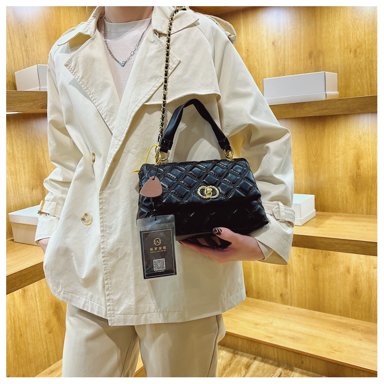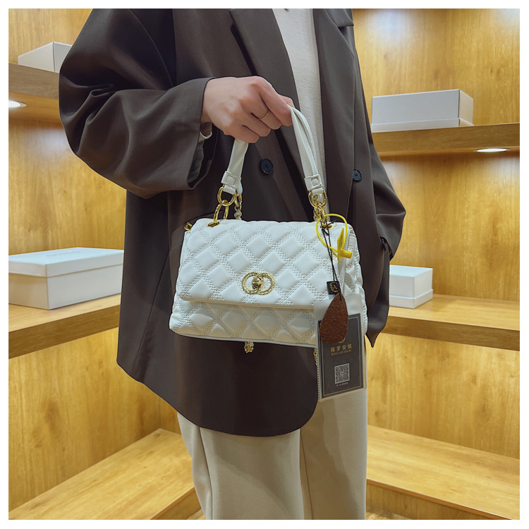 顏色:白色,黑色風格:街頭潮流材質:PU箱包潮流款式:小方包箱包大小:中流行元素:褶皺,車縫線,菱格