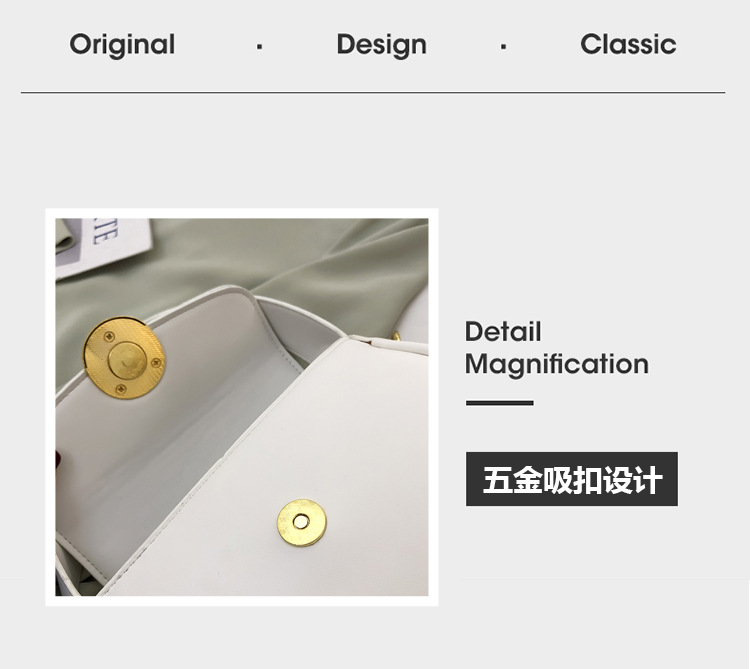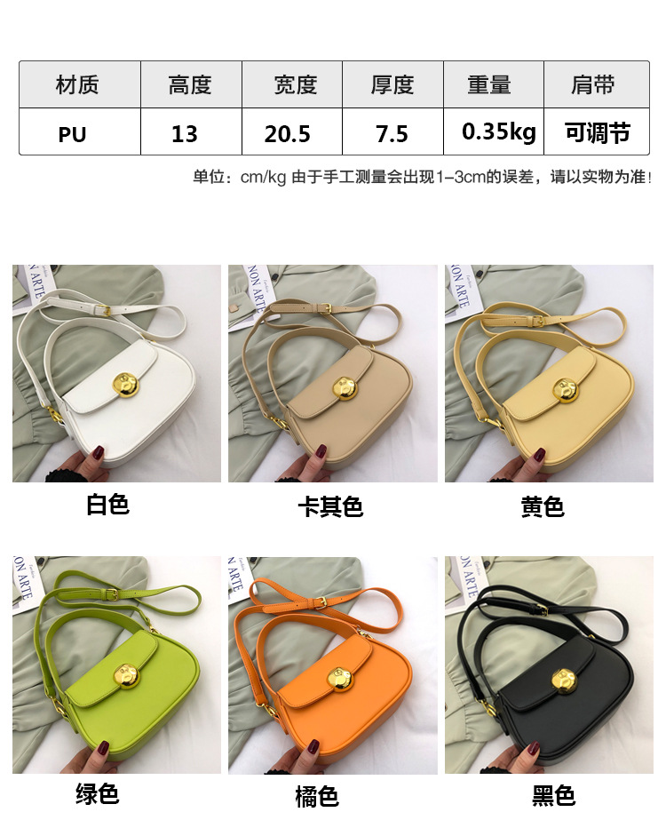 顏色:白色,黃色,卡其色,綠色,黑色,橘色風格:都市簡約材質:PU箱包潮流款式:小方包箱包大小:小流行元素:車縫線,皮紋,鎖扣