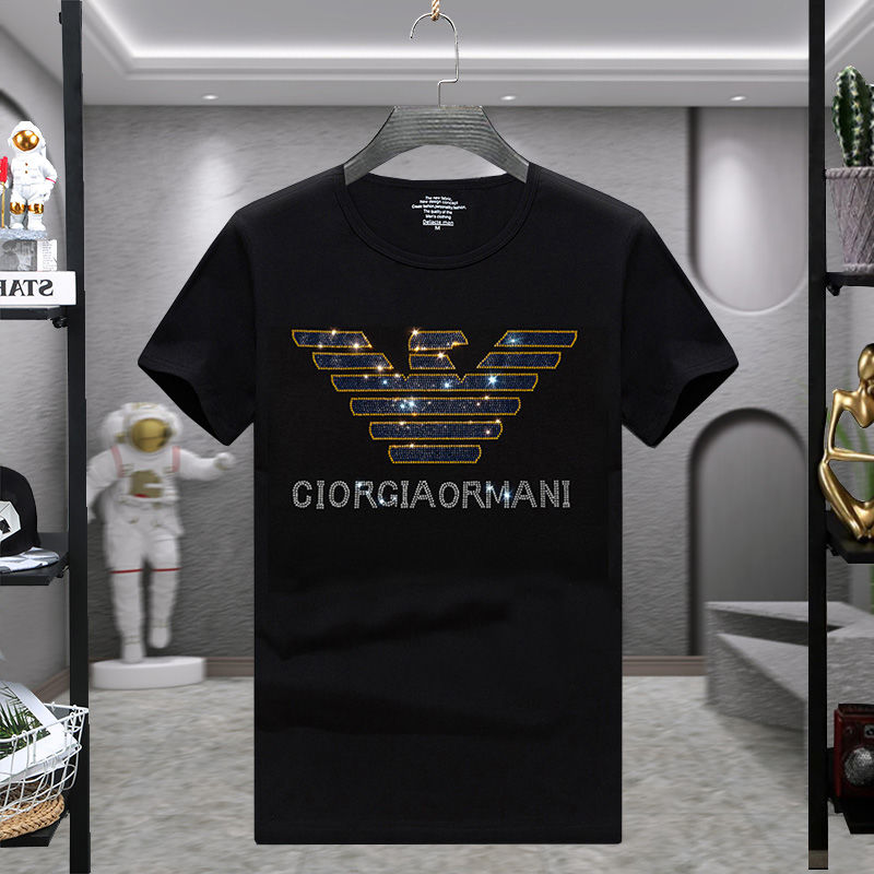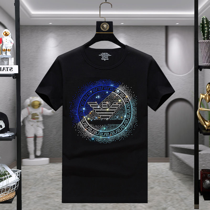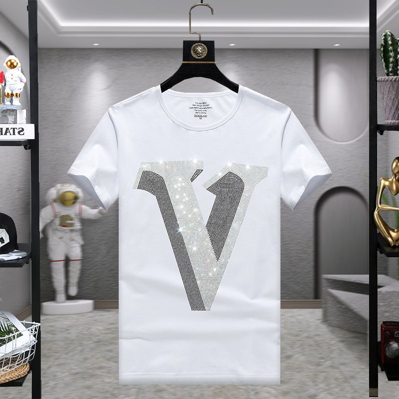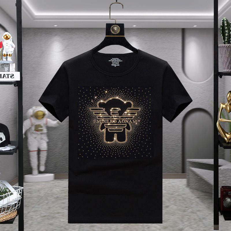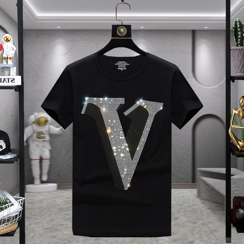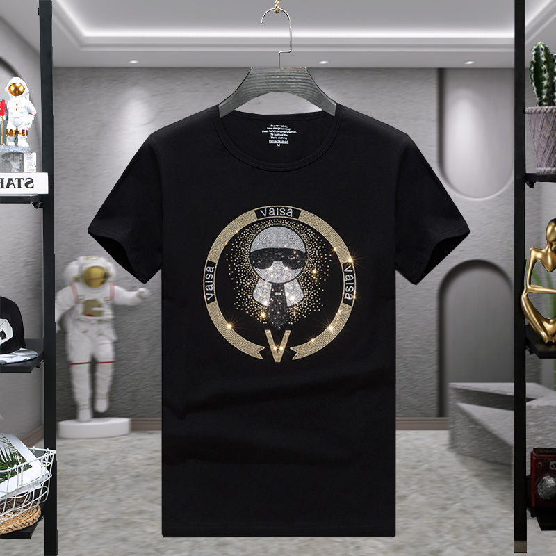 歐美夏季男士冰絲上衣燙鉆短袖T恤男時尚大碼半袖青年修身打底衫