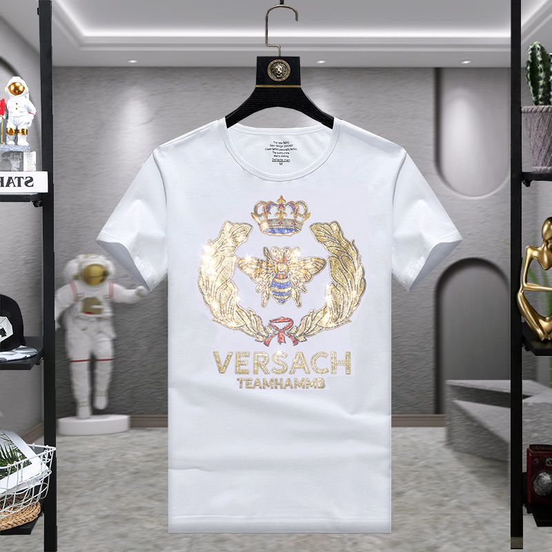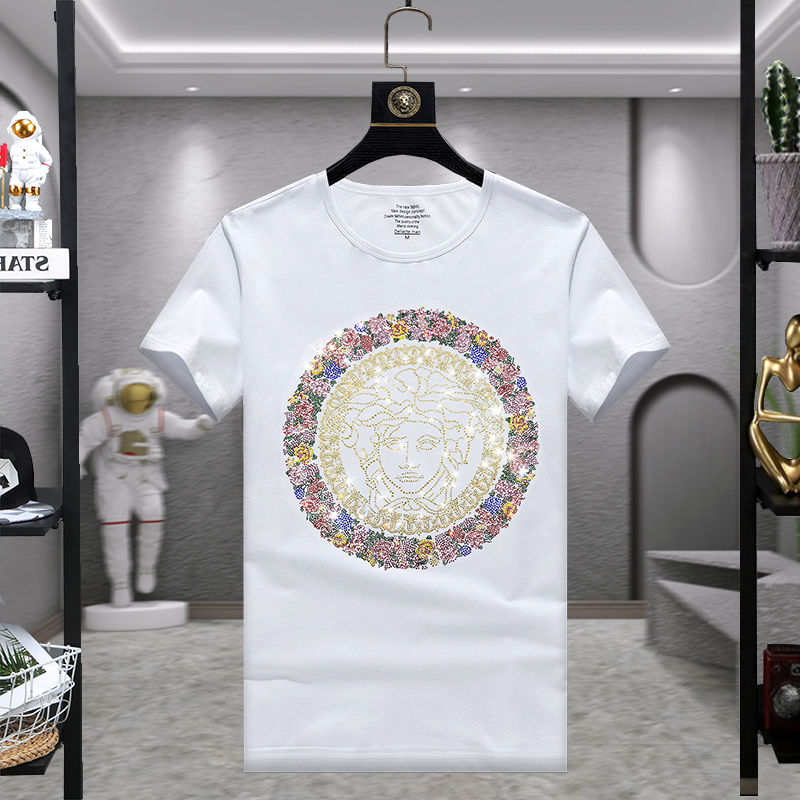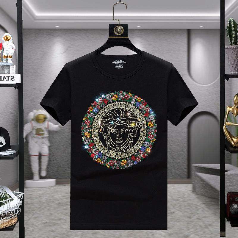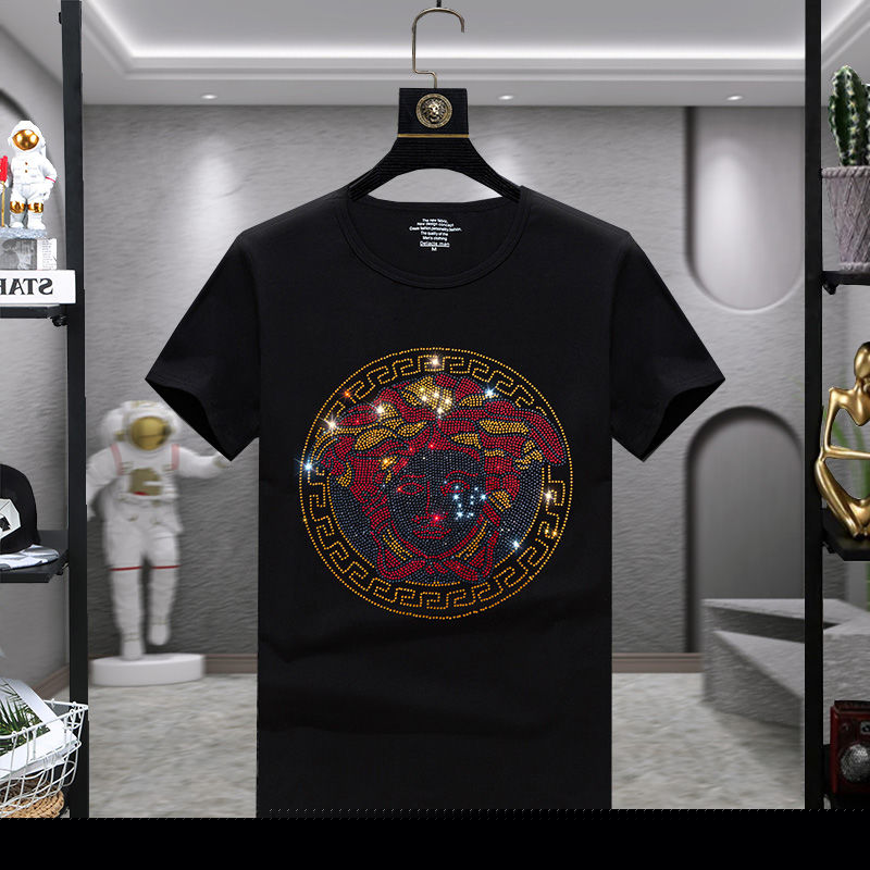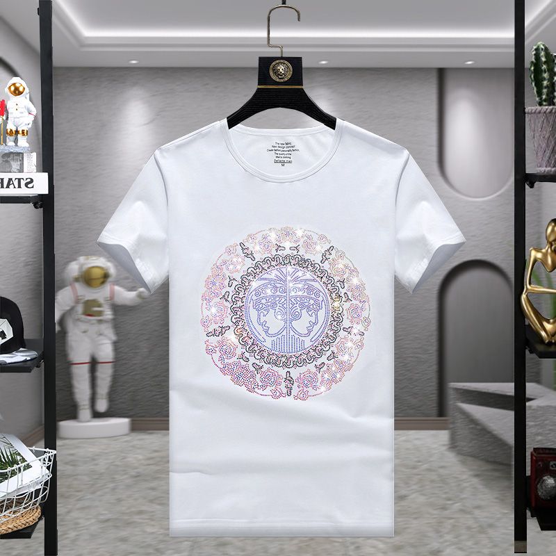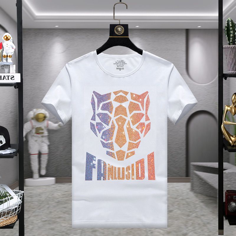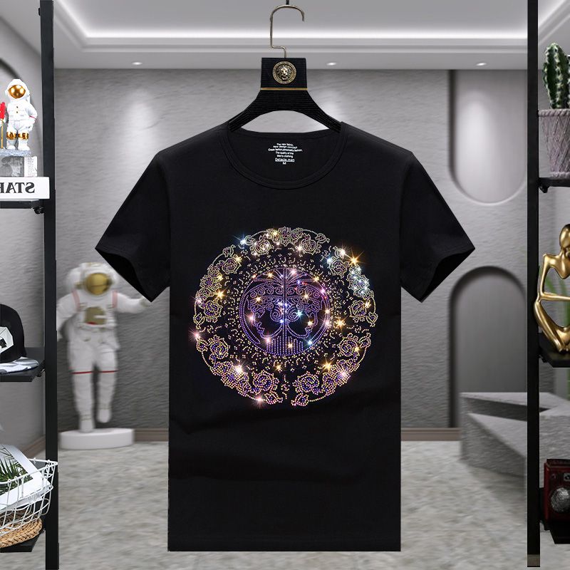 歐美夏季男士冰絲上衣燙鉆短袖T恤男時尚大碼半袖青年修身打底衫