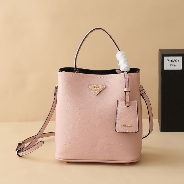 新款♥️大号💰390 ,PRADA DOUBLE BUCKET 高级鳄鱼纹拼色水桶包 🏆(普拉达)20FW 专柜美腻新品 原版手掌纹牛皮🖤超洋气咯 最新款可是俘获了不少少女的芳心 同时也是全球达人的百搭单品!超赞!✔️可谓是人人都想拥有①只 新品必备款 妹子抓紧入手这只 推荐自留 手提/斜挎/单肩  🔥🔥时尚精/洋气女神街拍首选 ✔️