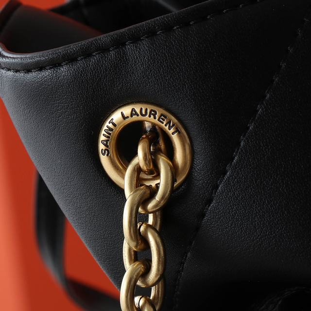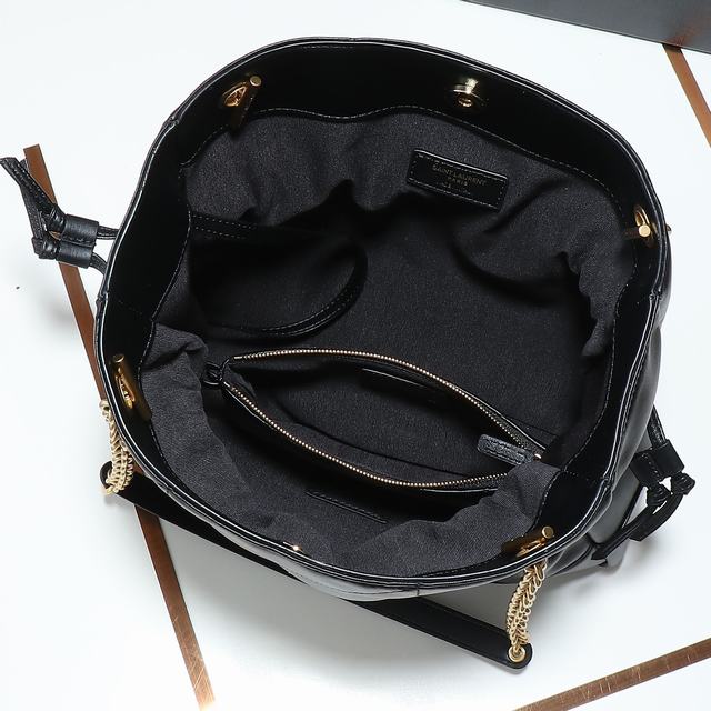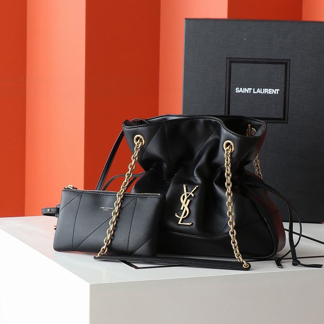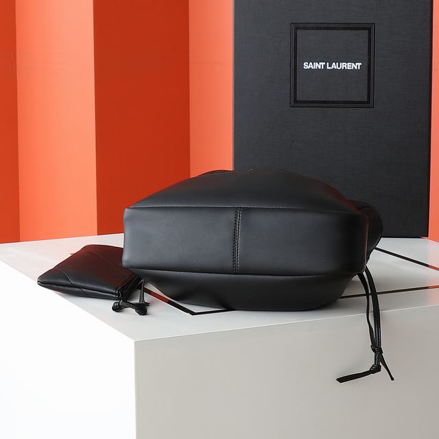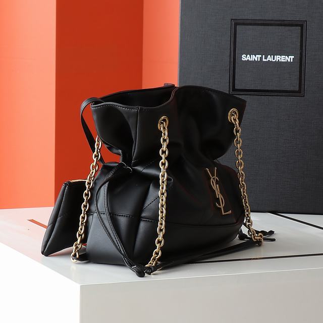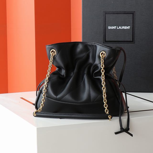 意大利进口柔软小羊皮 抽绳设计让手袋呈现出自然高级的褶皱感 金属链条和包身上的金属logo相得益彰 上身自然有种散发松弛的时髦感 福袋造型更加独特有态度!超大容量 可放下笔记本电脑💻