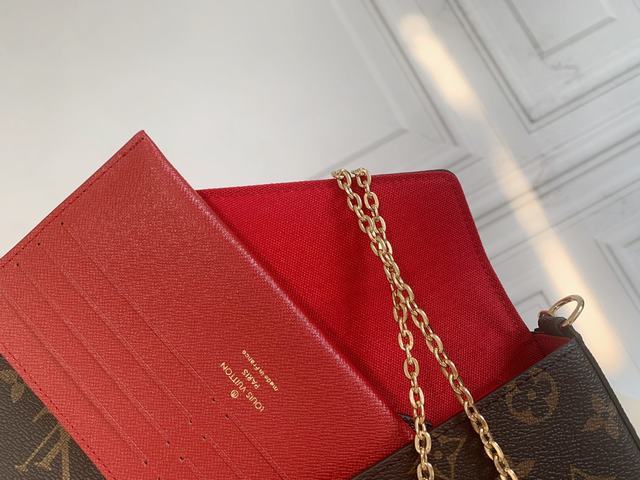 # 独家实拍💎FELICIE 手袋 M61276 Felicie手袋优雅华贵,内含两个可脱卸口袋,是携带整理您的日常用品的时尚之选。它不仅仅是款钱夹,除去金色链条后,它还可以用作迷人的手包或小型手袋。尺寸21*11*2cm,🍒实用性百分之100👌可斜挎手拿肩背,可随意出入专柜海关😍