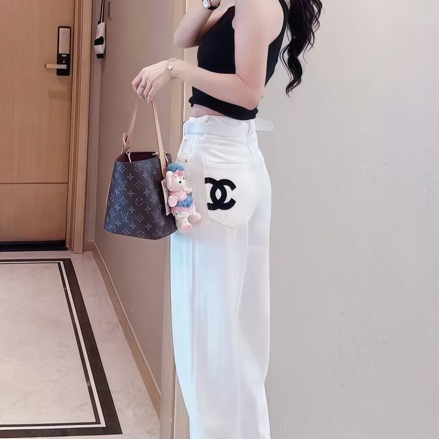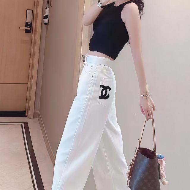 早秋2025白色高腰新款宽松牛仔裤显瘦长裤刺绣直筒百搭拖地裤子