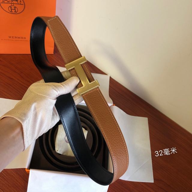 220  /300 H雙頭尖雙面皮腰帶,雙面可用。專櫃寬度32毫米。  號碼051220   022300