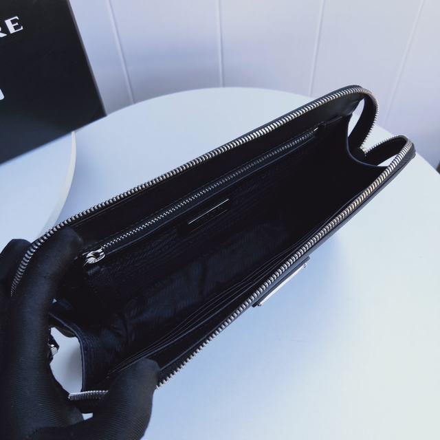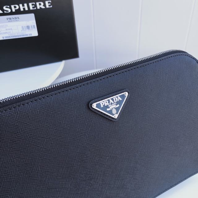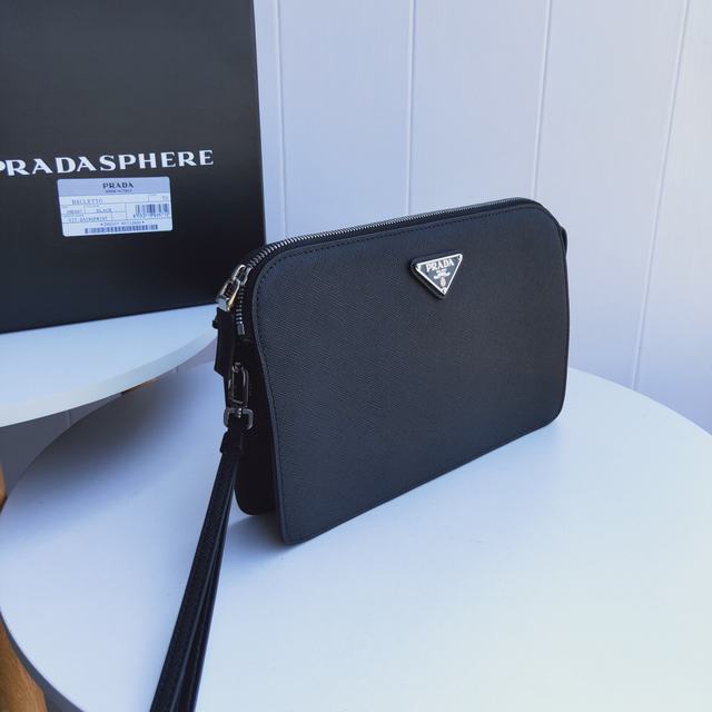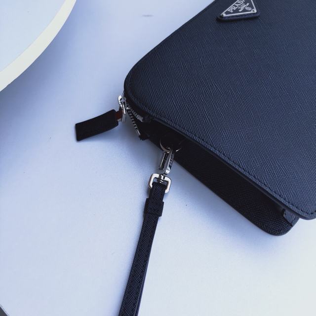 男士手包 2VF056 意大利進口Saffiano十字紋+超質感羊皮 採用進口設備️+線路均有清晰 歐洲ZP同步原版五金配件 三角搪瓷徽標 背面扁平手柄 可拆卸皮質腕帶 進口環保油邊 時尚潮流 專櫃品質 帶有175代工碼 尺寸:26.5*17*5cm