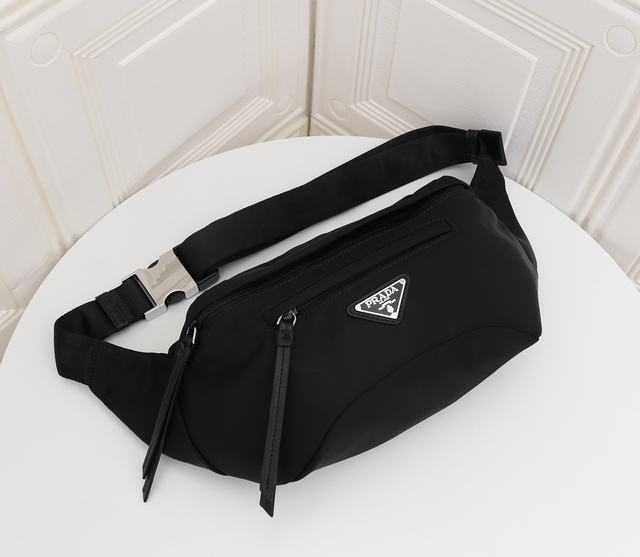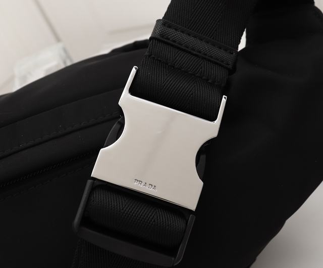 普拉達 PRADA19ss新款胸包/斜挎包 高顏值街拍必備 夏天必備的尼龍布包 上身超級酷 大空間 可調式肩帶 拋光鋼質金屬配件 內部Logo銘牌 尺寸:25 14 9