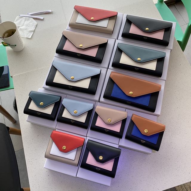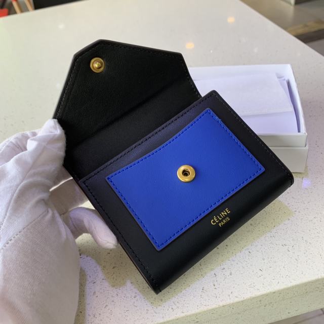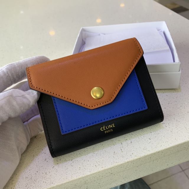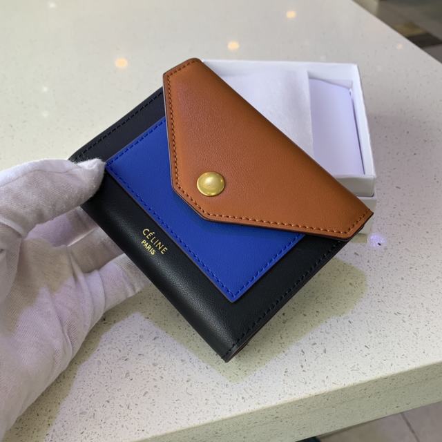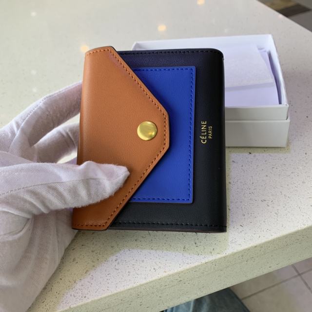 Celine 賽琳專櫃pocket 信封錢包️2106,短款拼色亮澤光滑小牛皮三重折疊多功能錢包 小牛皮和小牛皮襯裡 皮質超完美 手感超棒配專櫃原版盒😯現貨熱賣中!尺寸:14cm!