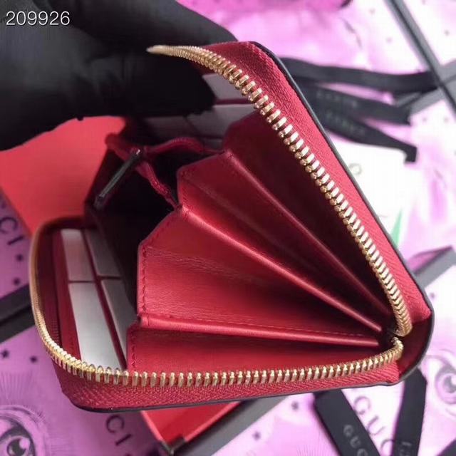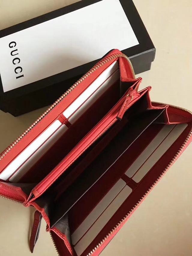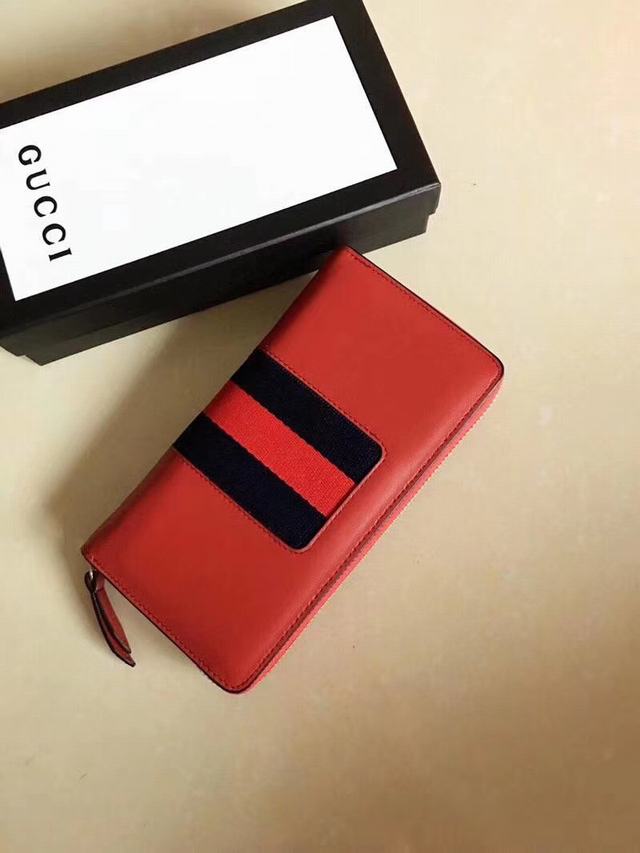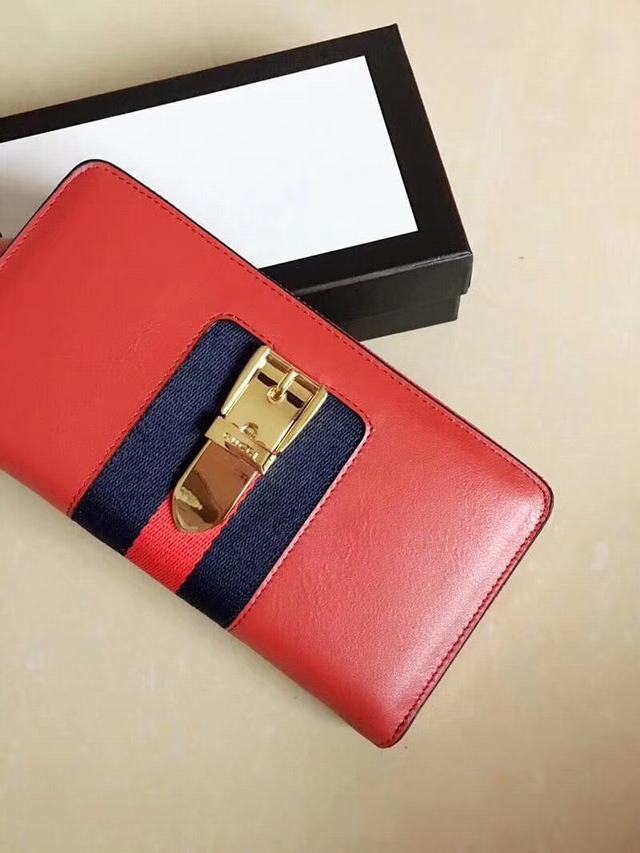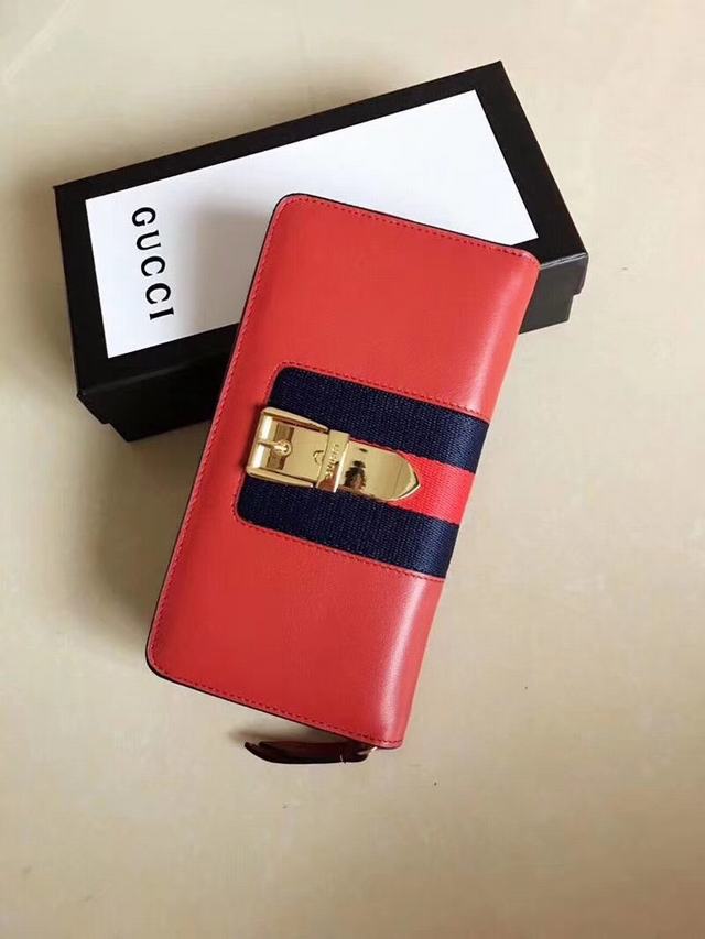 G家 美到淋漓盡致Sylvie全拉鏈式皮夾  造型經典  金屬帶扣取自品牌臻品與織帶條紋精緻混搭  相映成趣  型號476083紅色牛皮  尺寸:w19.5×h11×d3