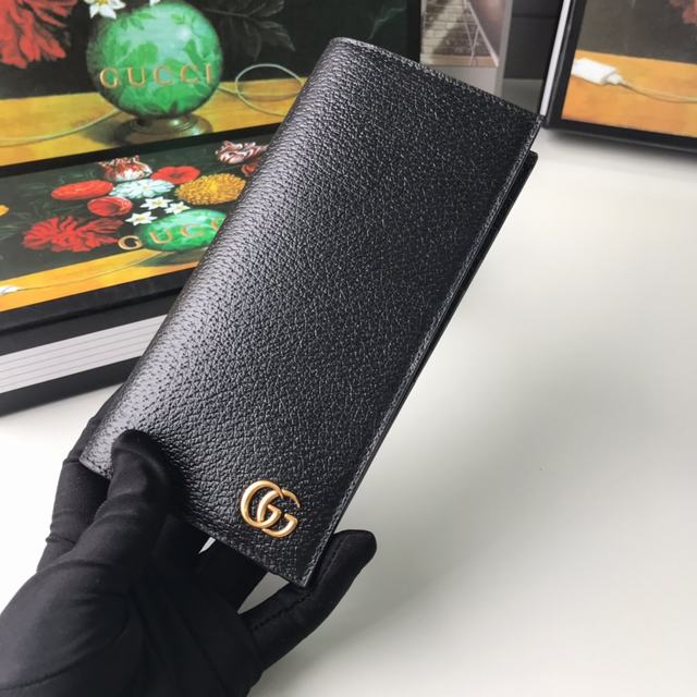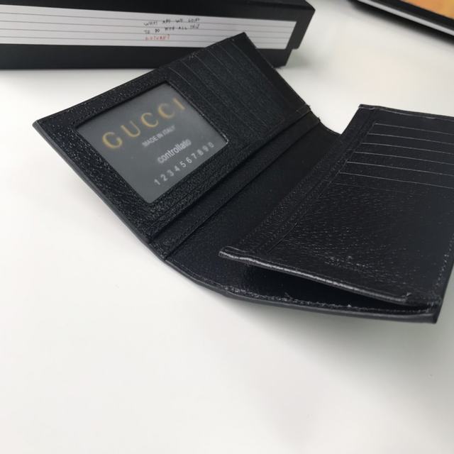 男士西裝夾專屬高端打造🏻完美細節無可挑剔🏻🏻 經典GG五金成為了代表性標誌深得男士們喜愛, 型號:436023,顏色:黑色豬紋皮,尺寸:9*17.5*2cm。
