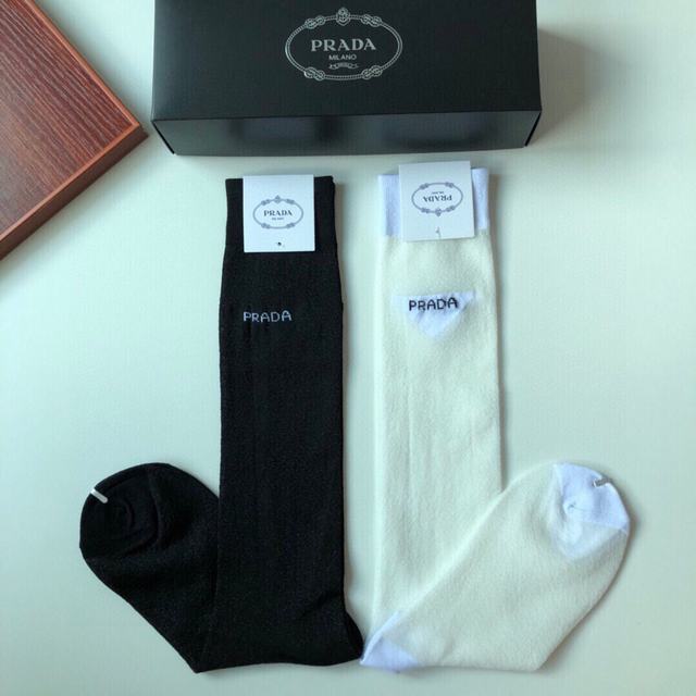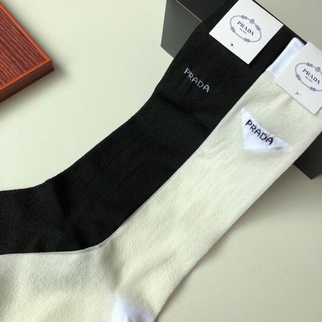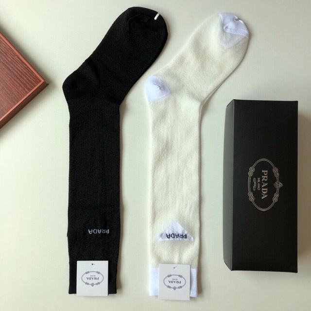 PRADA · 普拉達❗️早春出口訂單❗️夏季小腿長襪,別緻吸睛,牛奶絲材質❗️輕薄親膚透氣,經典倒三角標誌,表面有著溫潤的光澤感,上腳絲滑而顯高檔質感,全品相訂單品❗️【一盒二雙】❗️ins超火爆單品,潮人必備喲