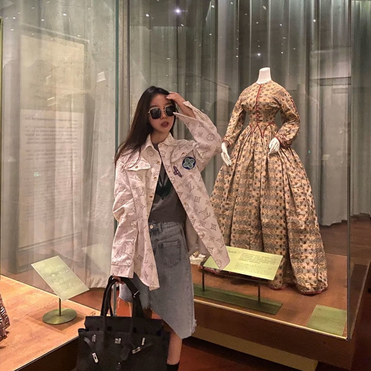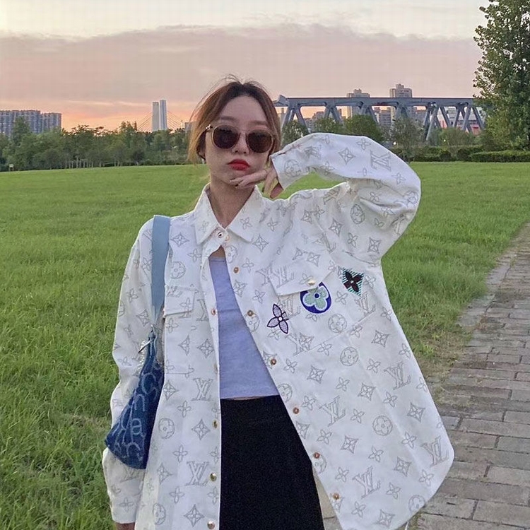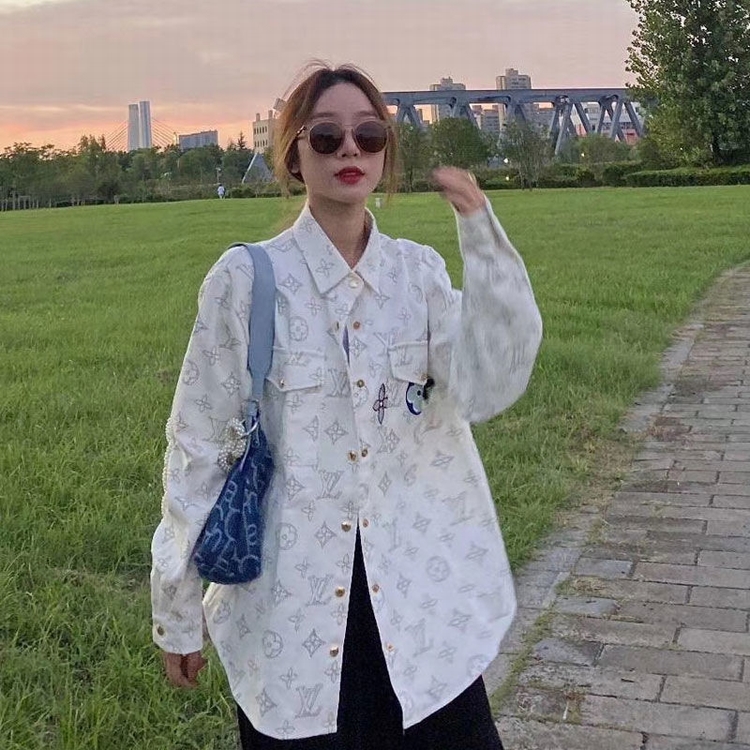 2021春夏裝國潮襯衫女粉色格子牛仔外套ins韓版寬鬆潮牌上衣