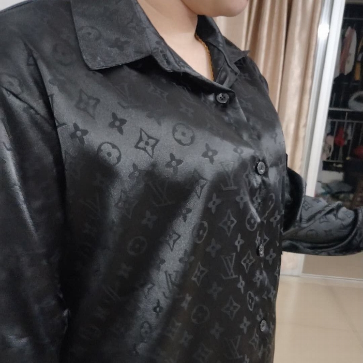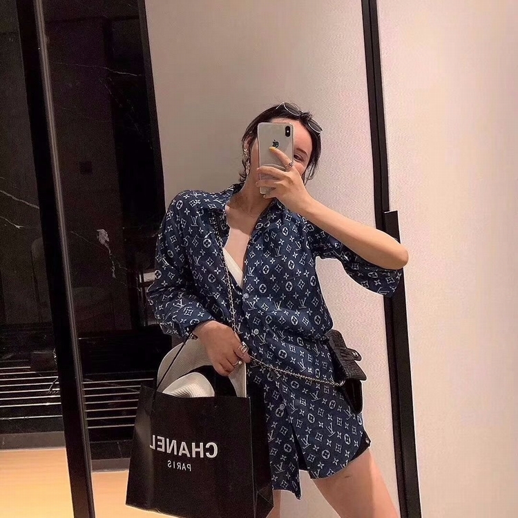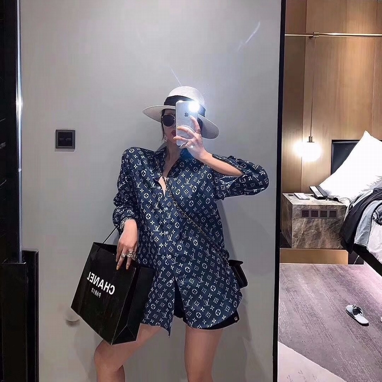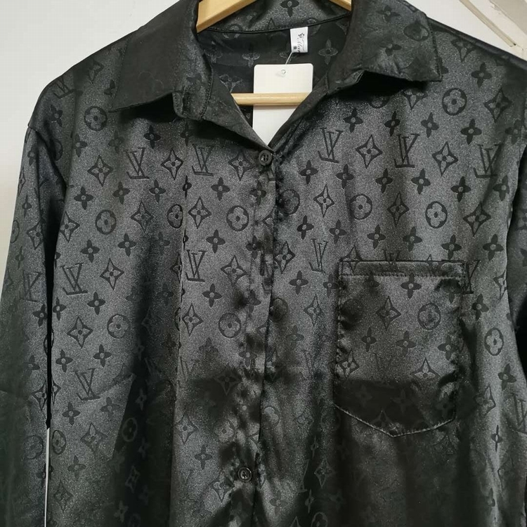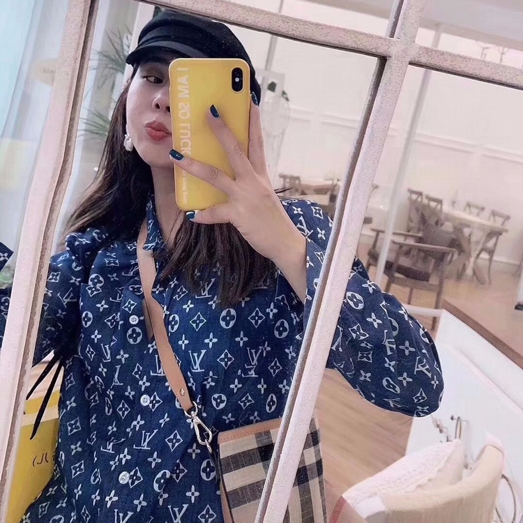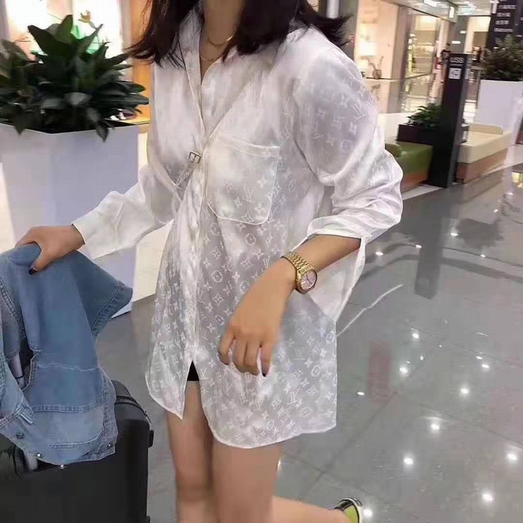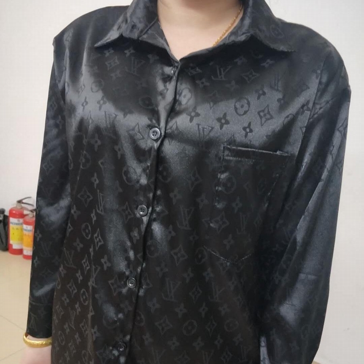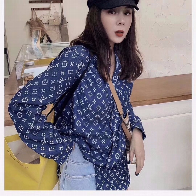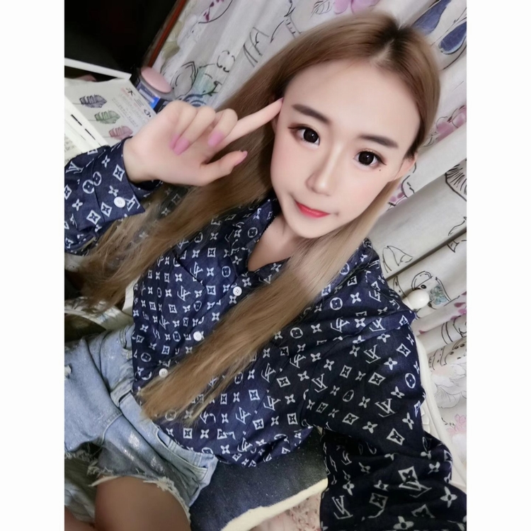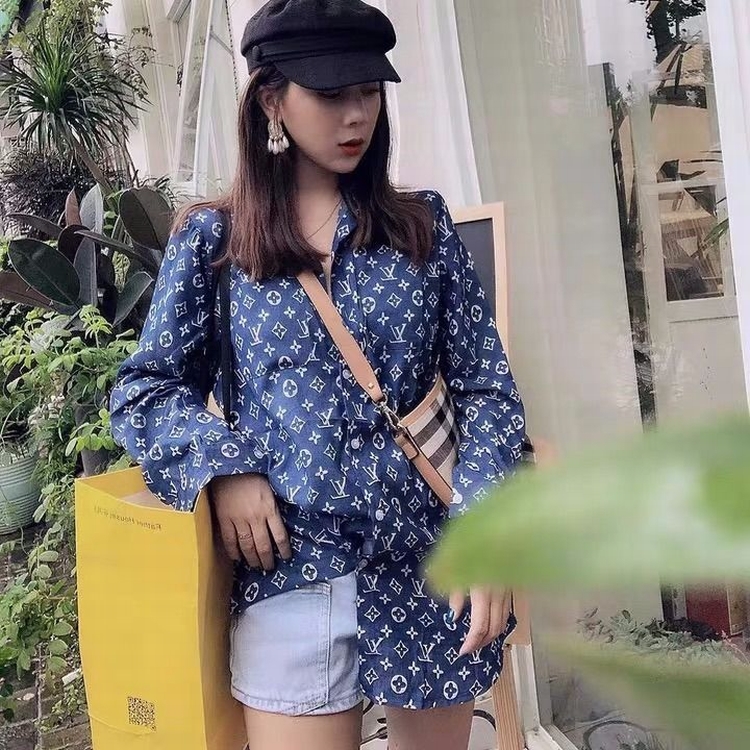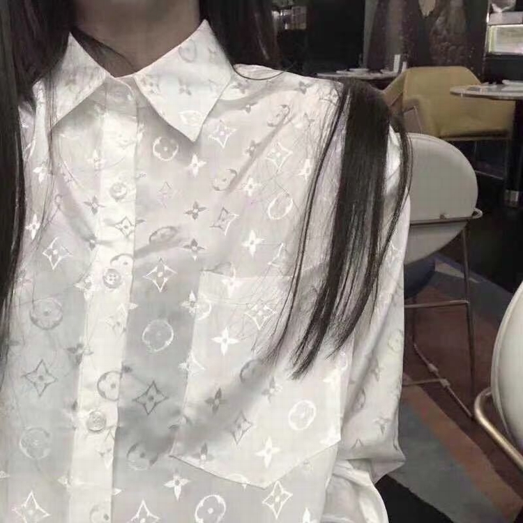 早秋快手網紅同款時尚字母印花襯衫復古長袖寬鬆中長款襯衣女潮