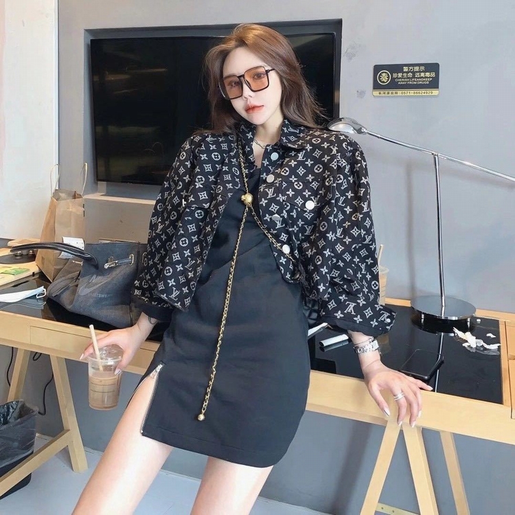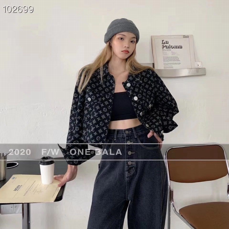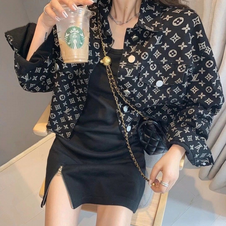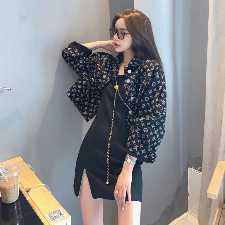 红短外套女新款老提花满印短款牛仔外套