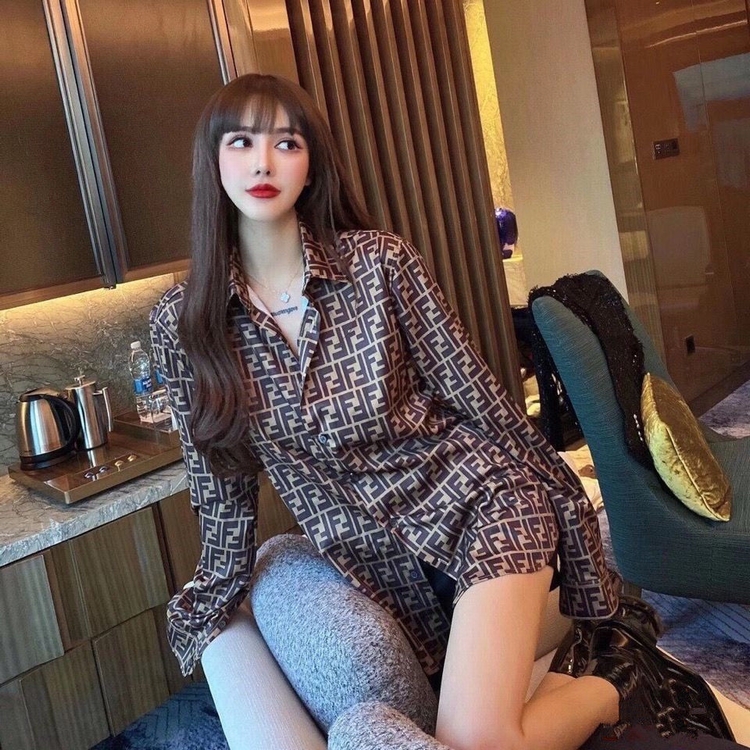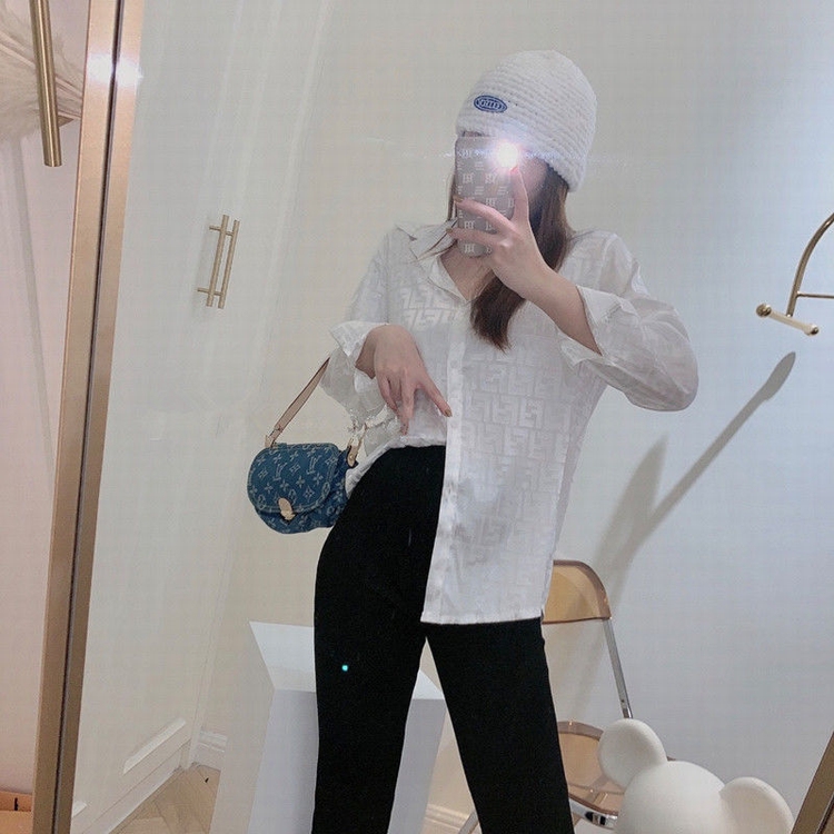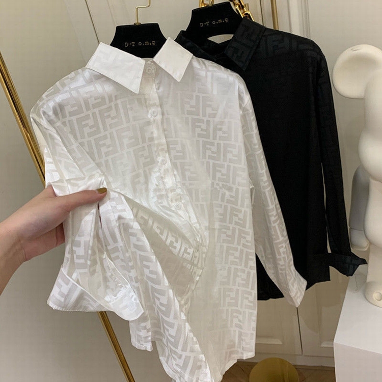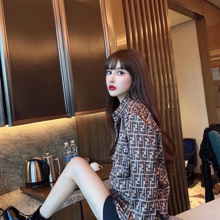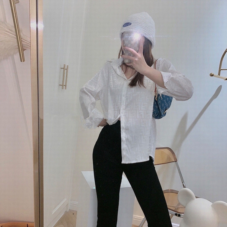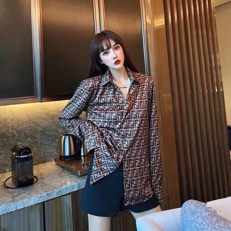 2021新款长袖宽松时尚衬衫外套满身印花衬衫女韩版中长款上衣女