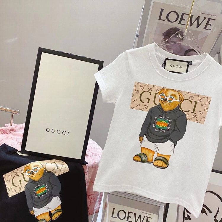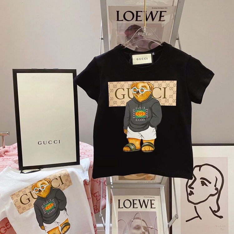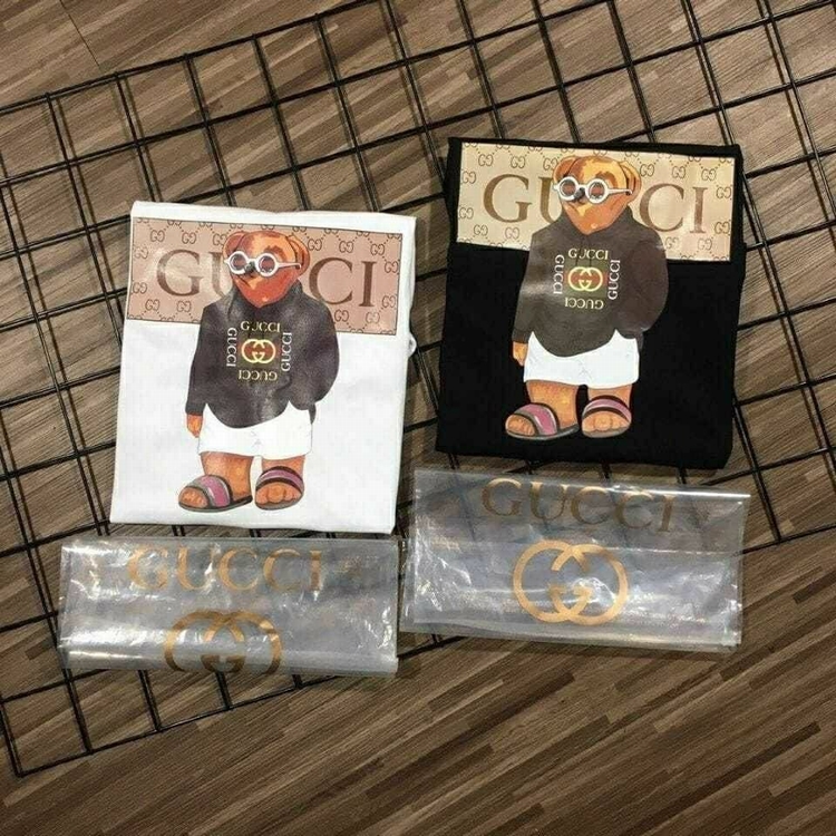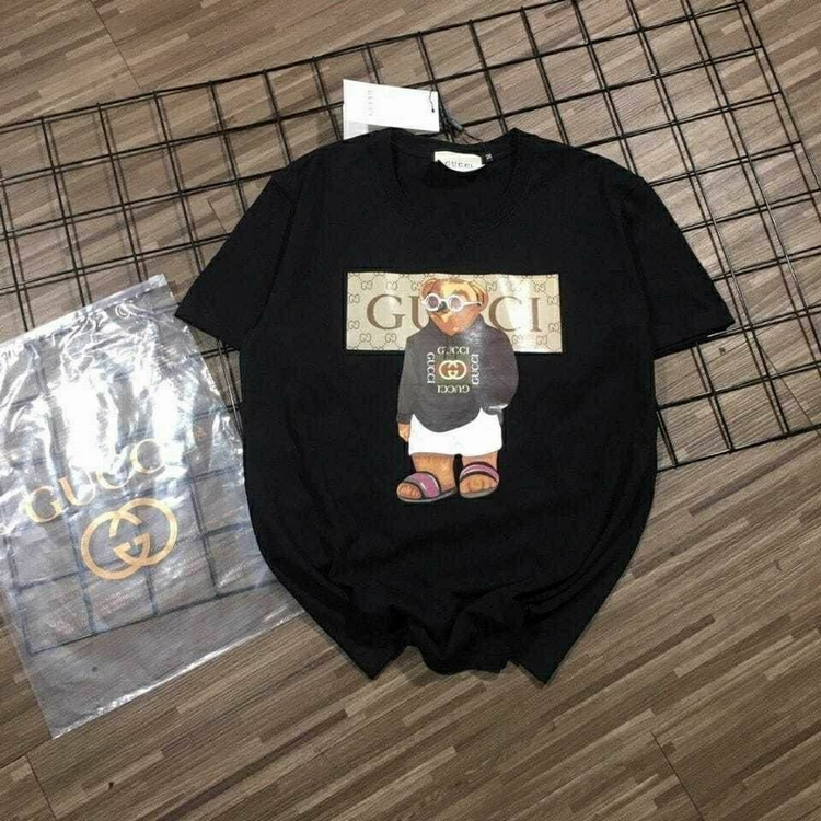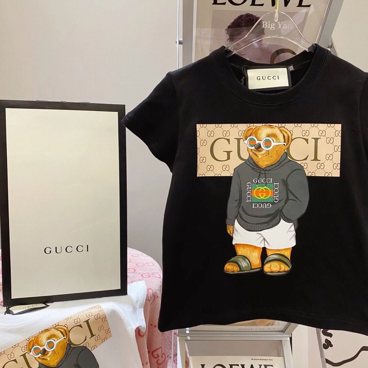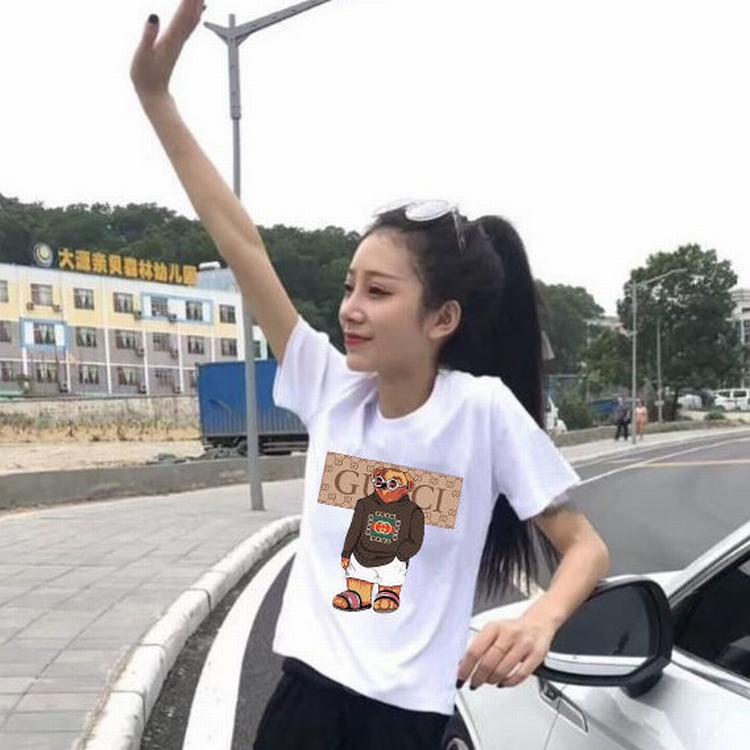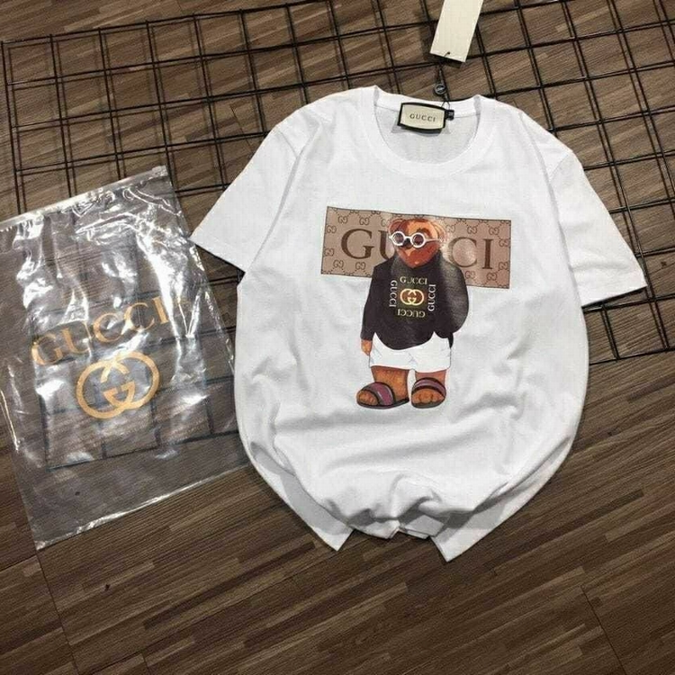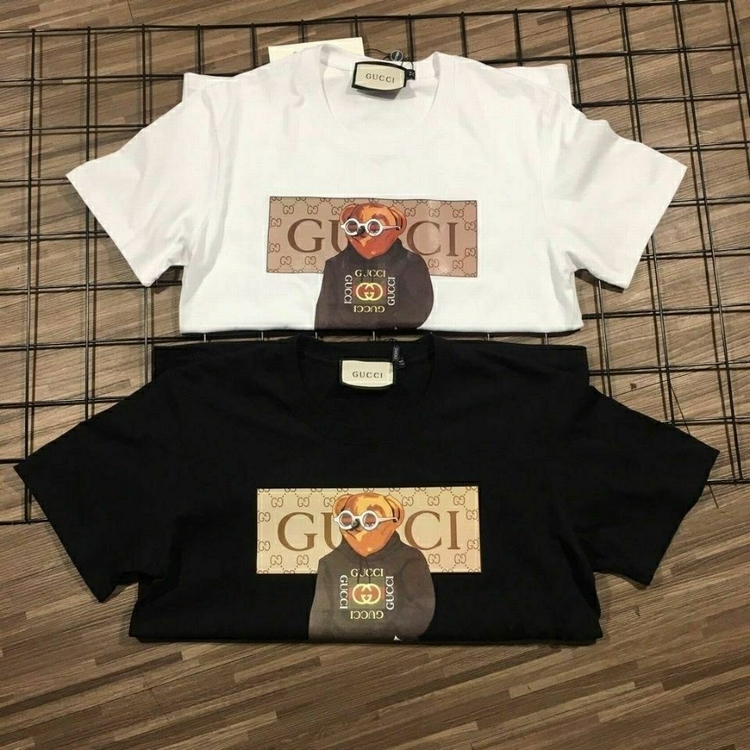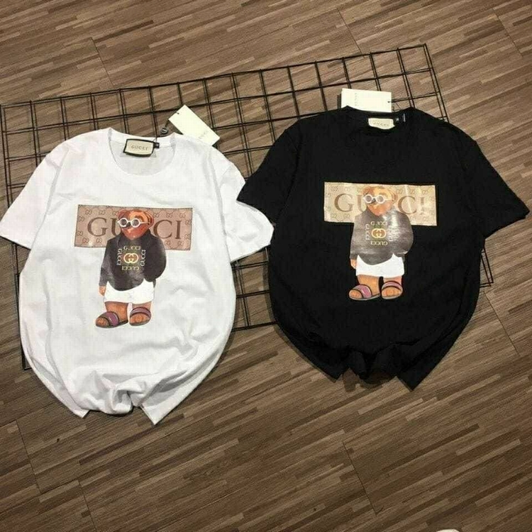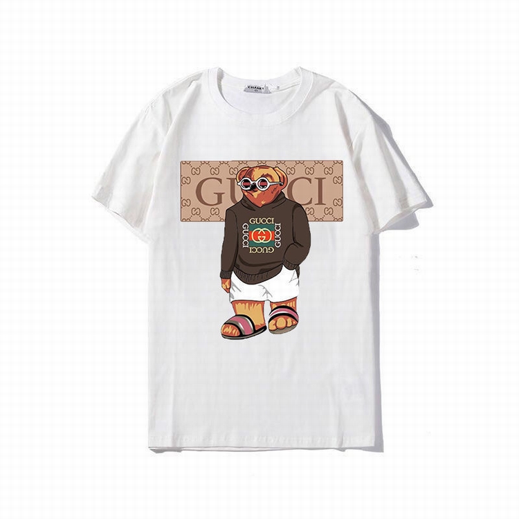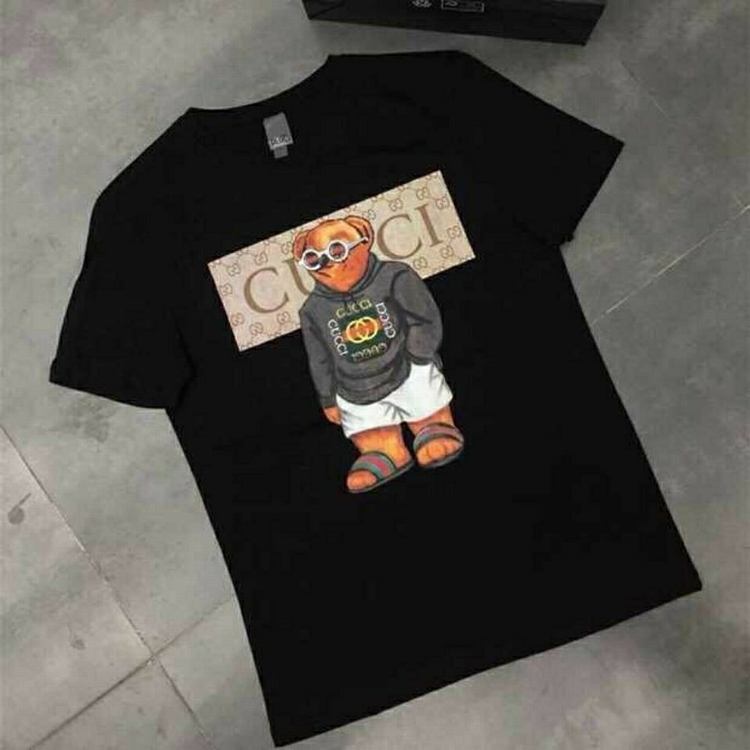 歐美春夏古新款G家琦馳卡通眼鏡小熊印花純棉短袖男女同款T恤潮