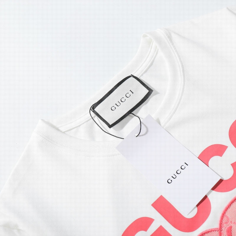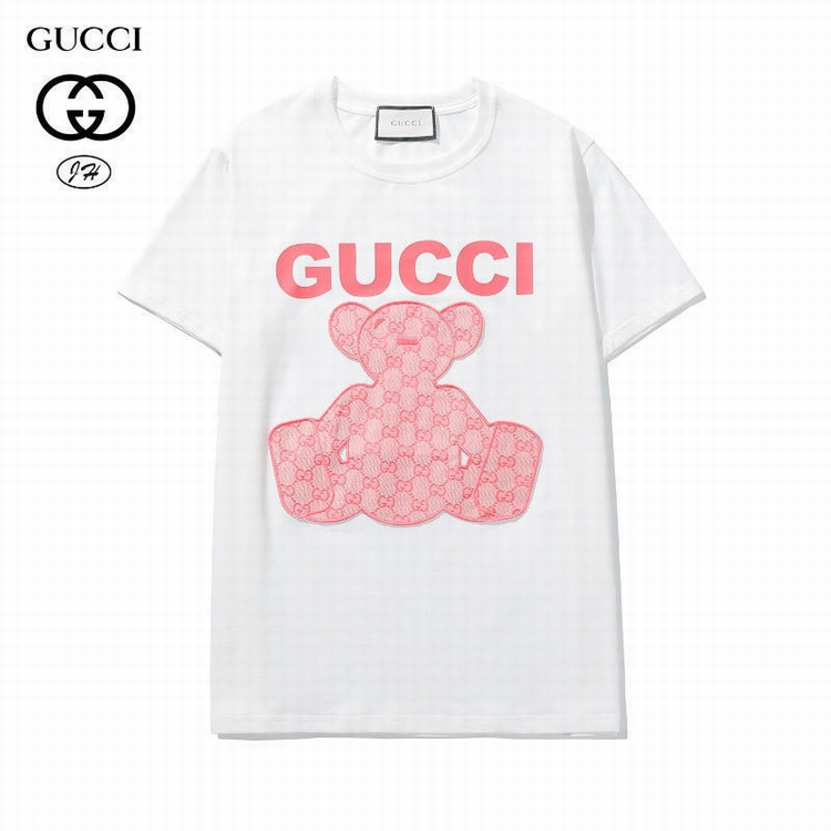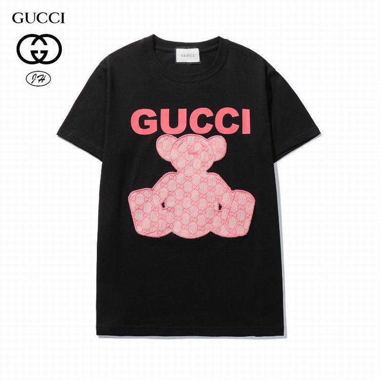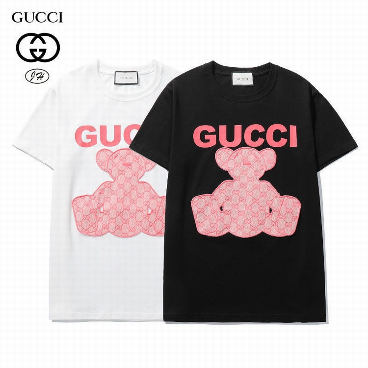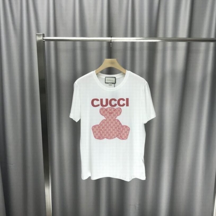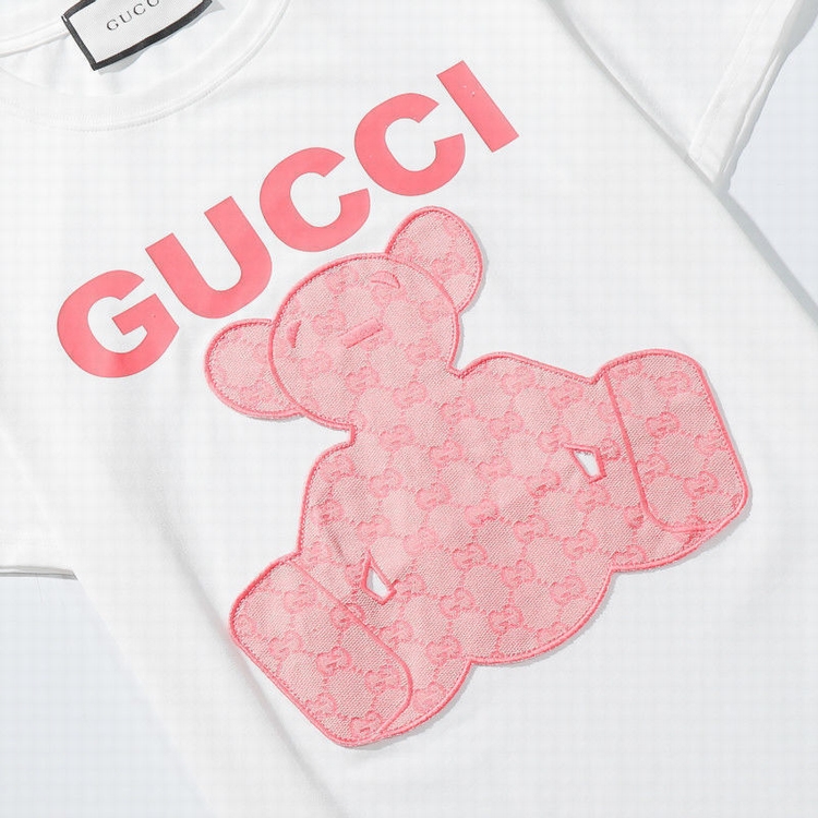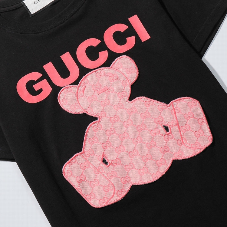 歐洲站春夏新款G家潮粉布貼刺繡小熊純棉短袖T恤男女同款寬鬆半袖