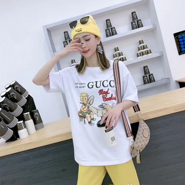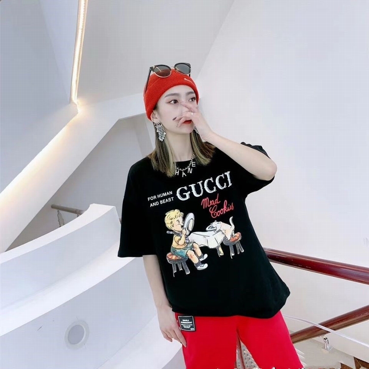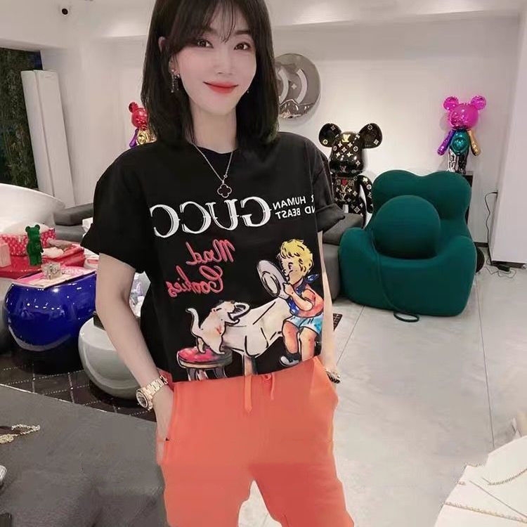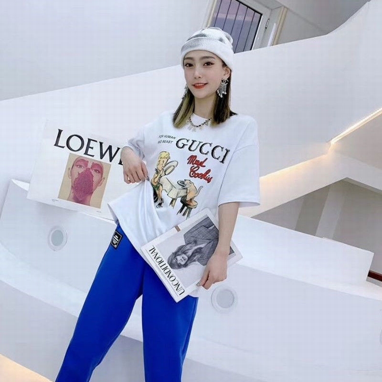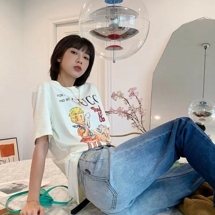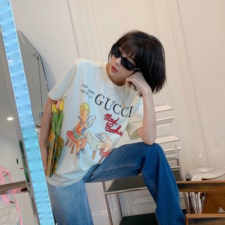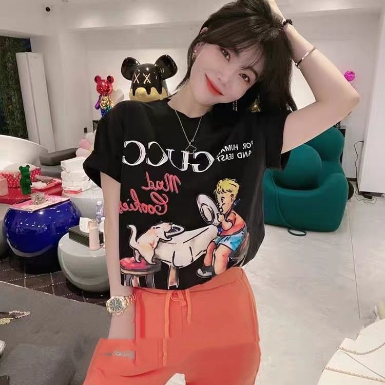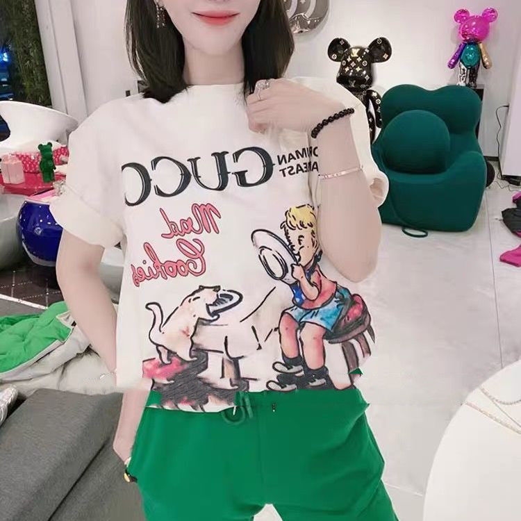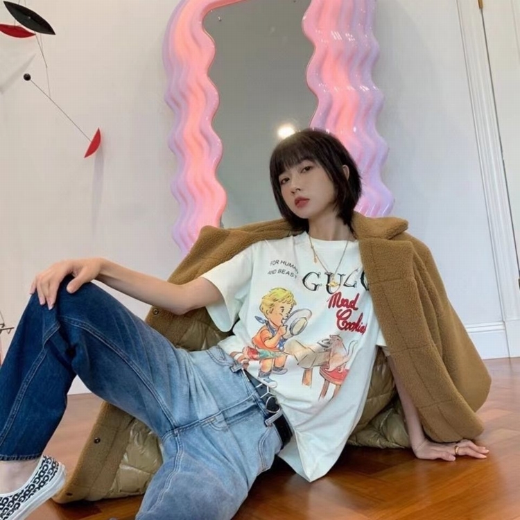 新款G家T恤卡通童真印花圓領純棉短袖男女情侶學生寬鬆上衣潮