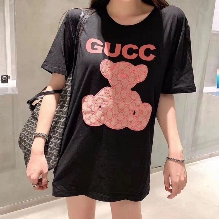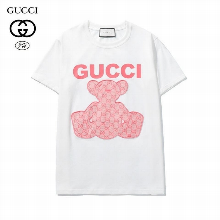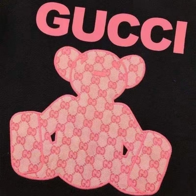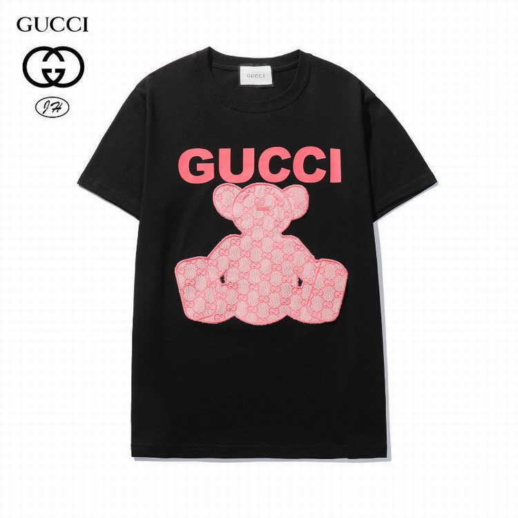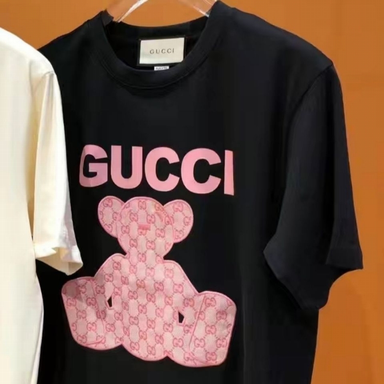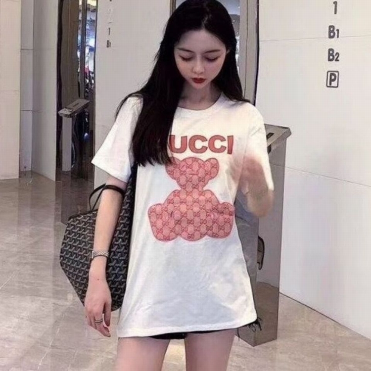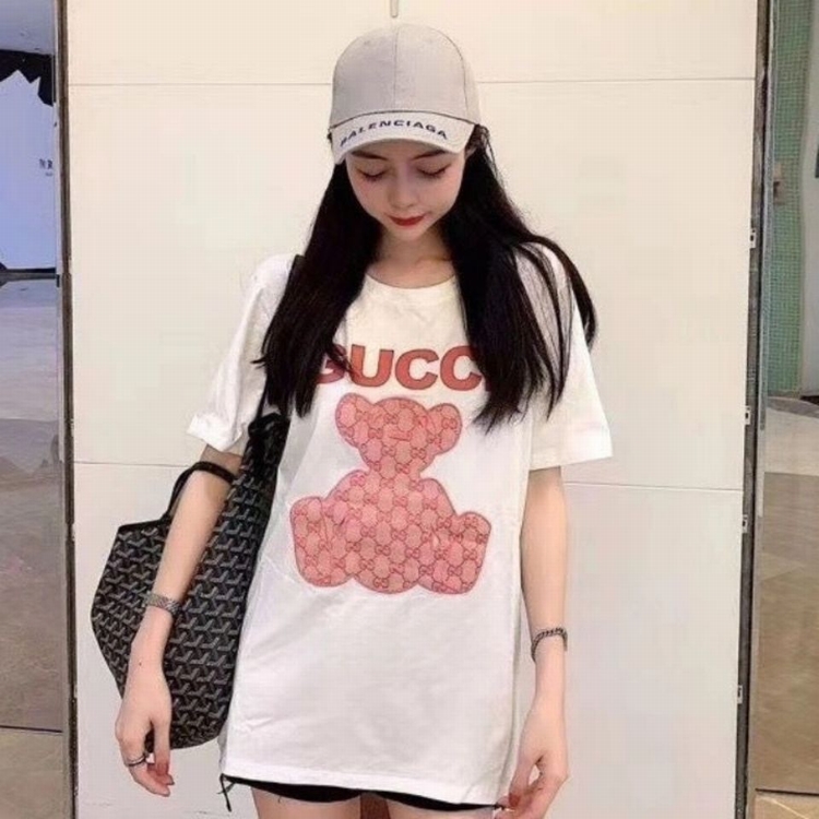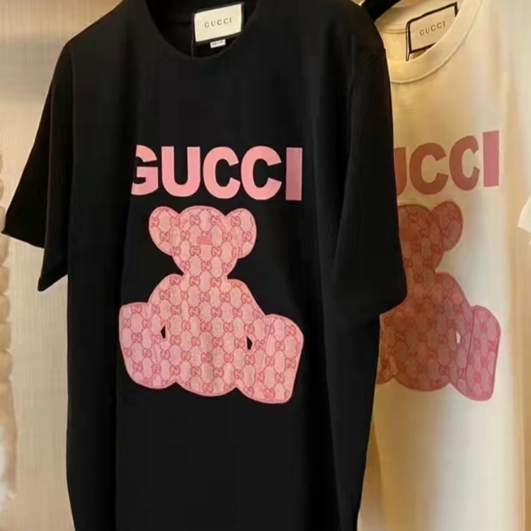 2021歐洲站春夏新款G家潮粉小熊印花純棉短袖T恤男女同款寬鬆半袖
