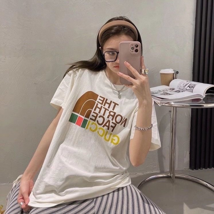 2021春夏新款歐美G家聯名印花圓領純棉T恤男女寬鬆短袖情侶上衣潮