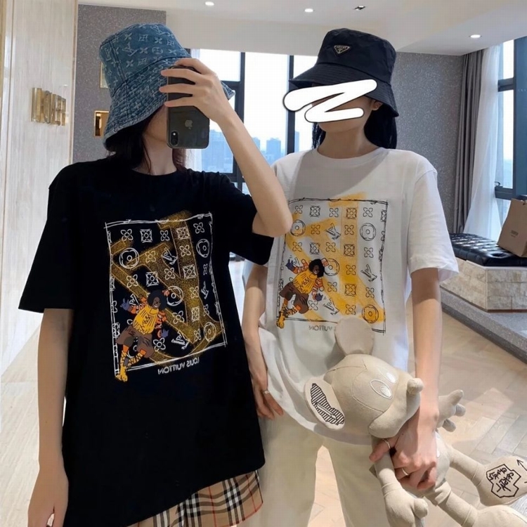 夏季新款L印花小丑V圓領純棉T恤男女寬鬆韓版情侶裝潮簡約