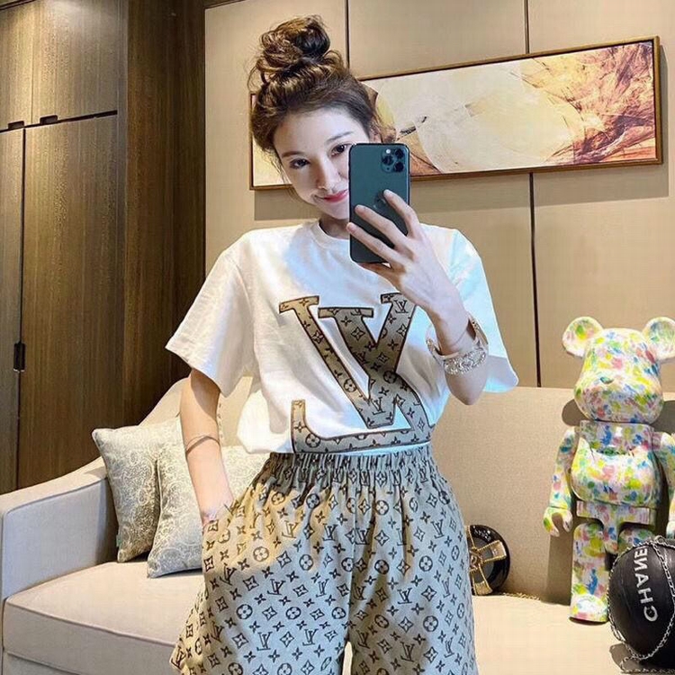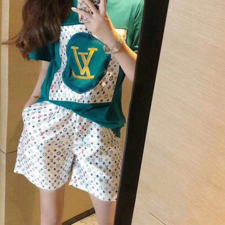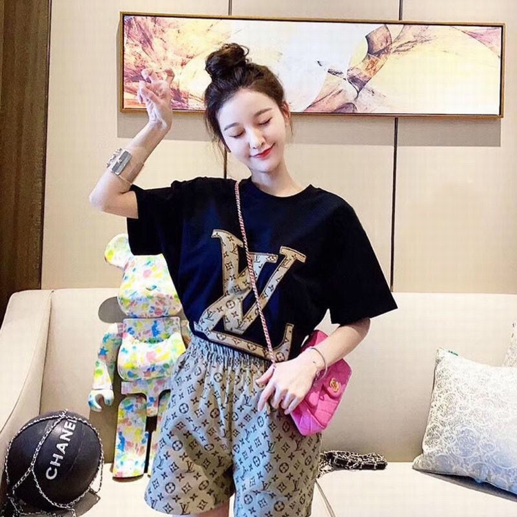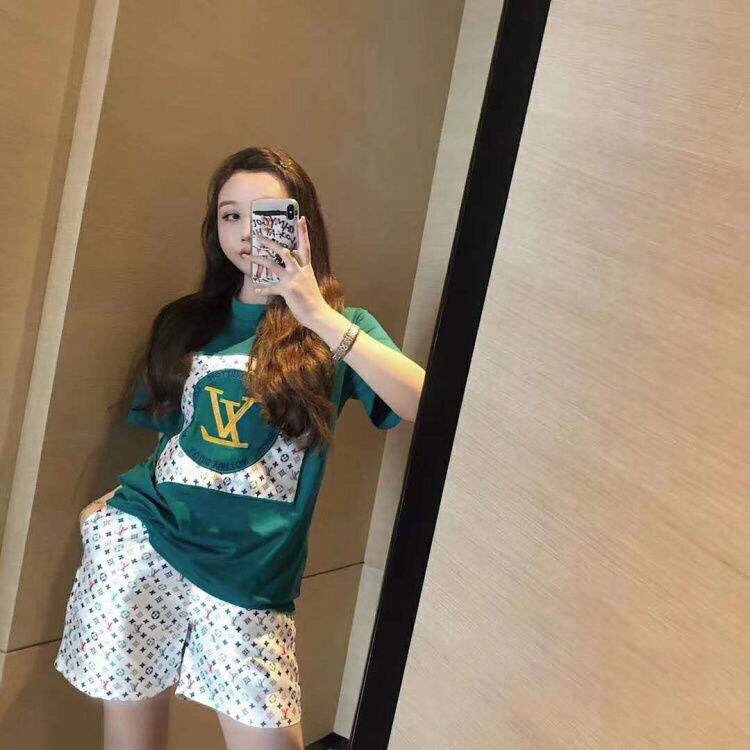 寬松韓版時尚短袖T恤+休閑印花短褲套