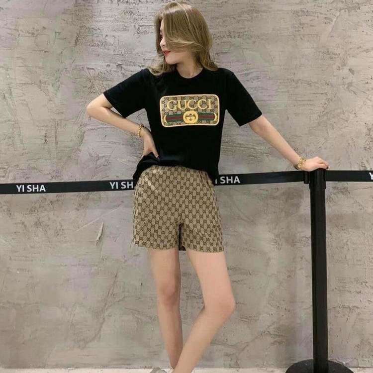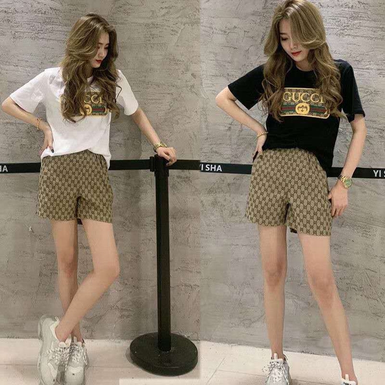 套裝ins時尚闊腿褲套裝女夏韓版松緊腰短褲+短袖T恤兩件套潮