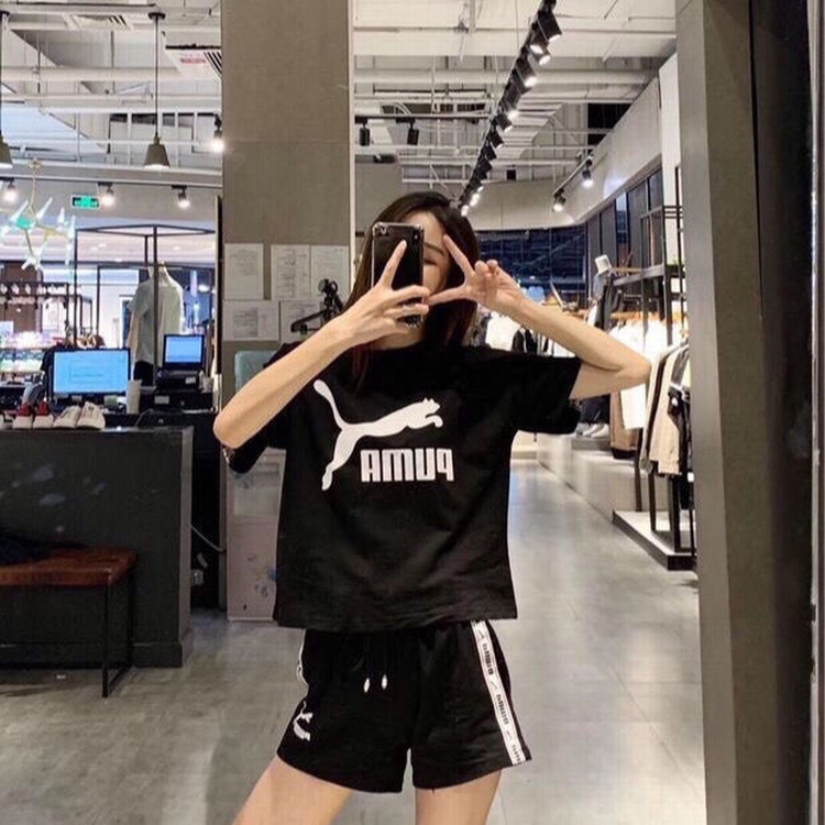 寬松韓版時尚短袖T恤+休閑印花短褲套