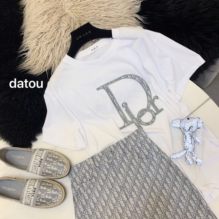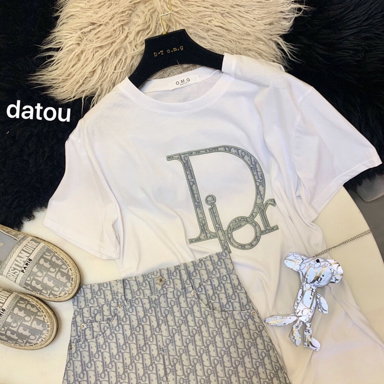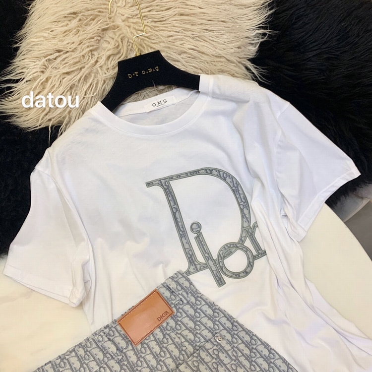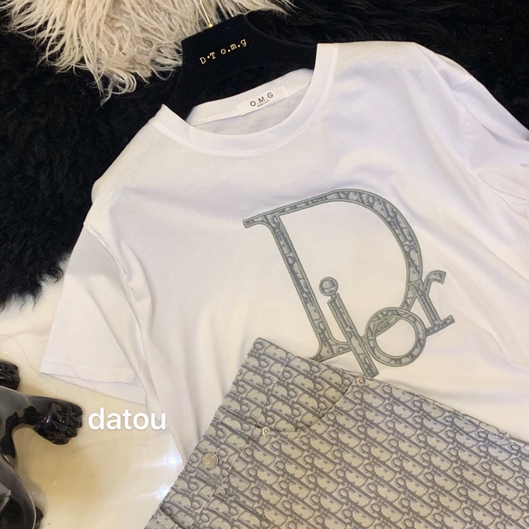 夏季潮牌經典字母迪歐刺秀女裝純棉短袖T恤歐貨
