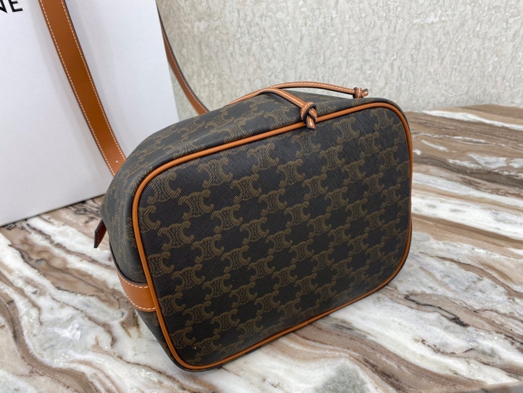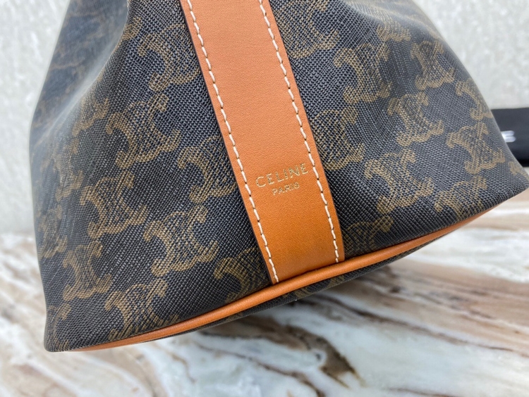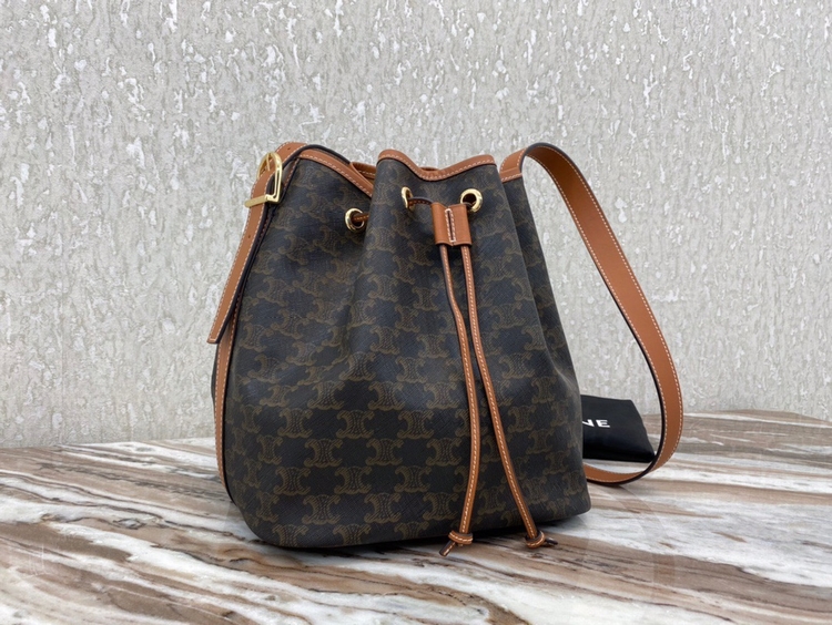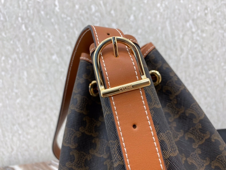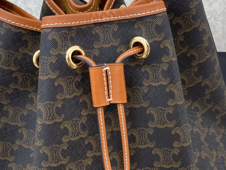 CELINE中號TRIOMPHE帆布抽繩包復古斜挎 有內標 61%塗層帆布,39%小牛皮,斜挎和肩背,抽繩真皮帶,可調節皮革肩帶 長50cm