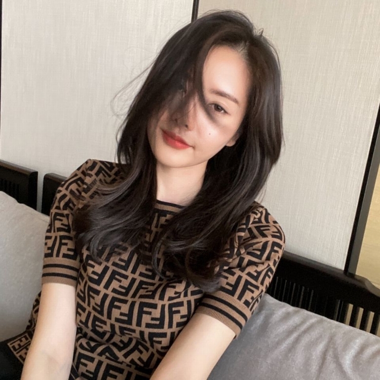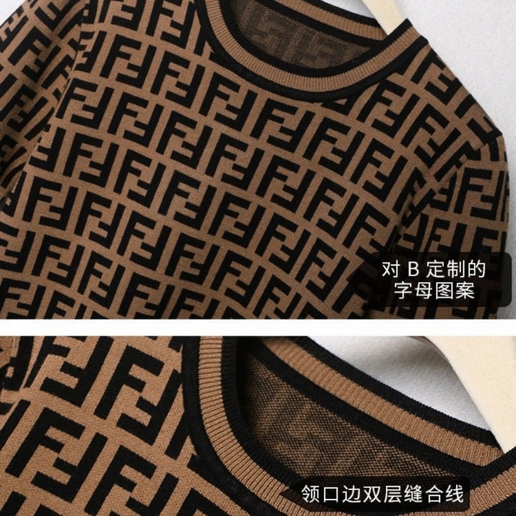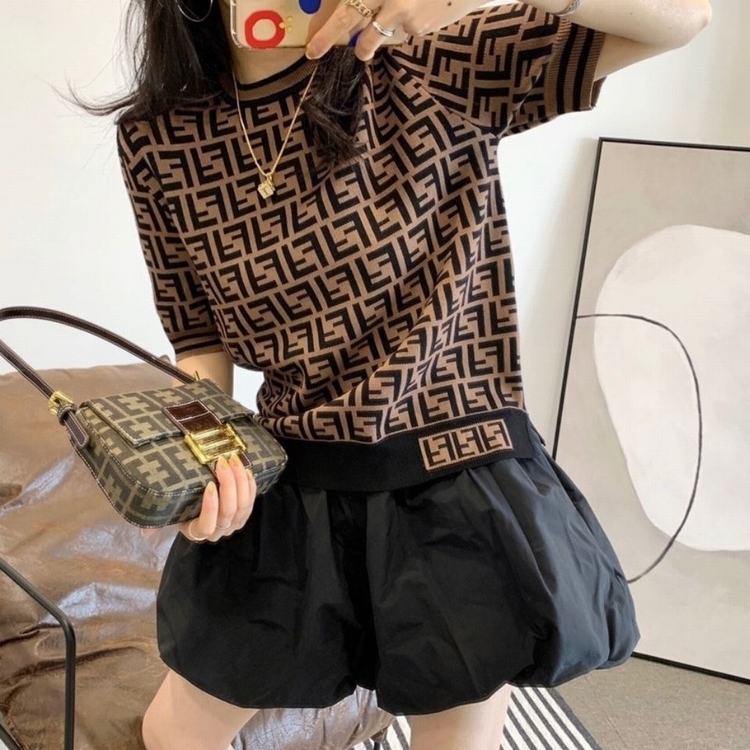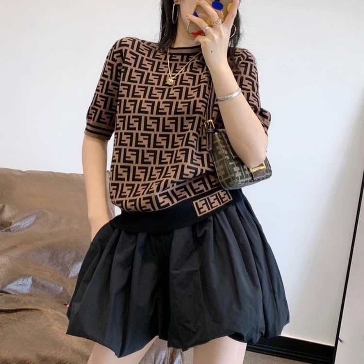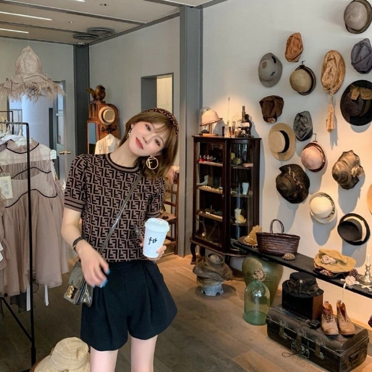 2021新款歐洲站FD字母針織套頭圓領短袖時尚顯瘦百搭T恤網紅同款
