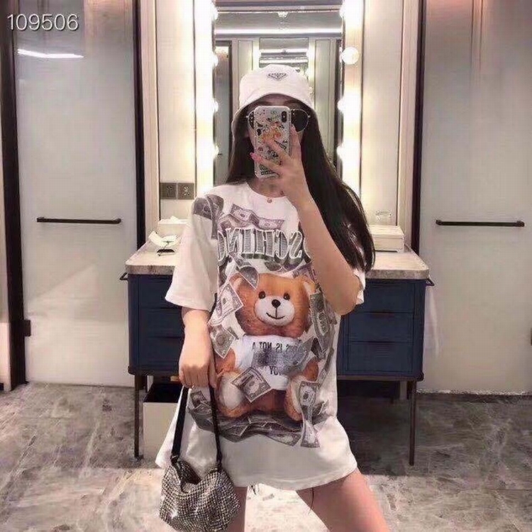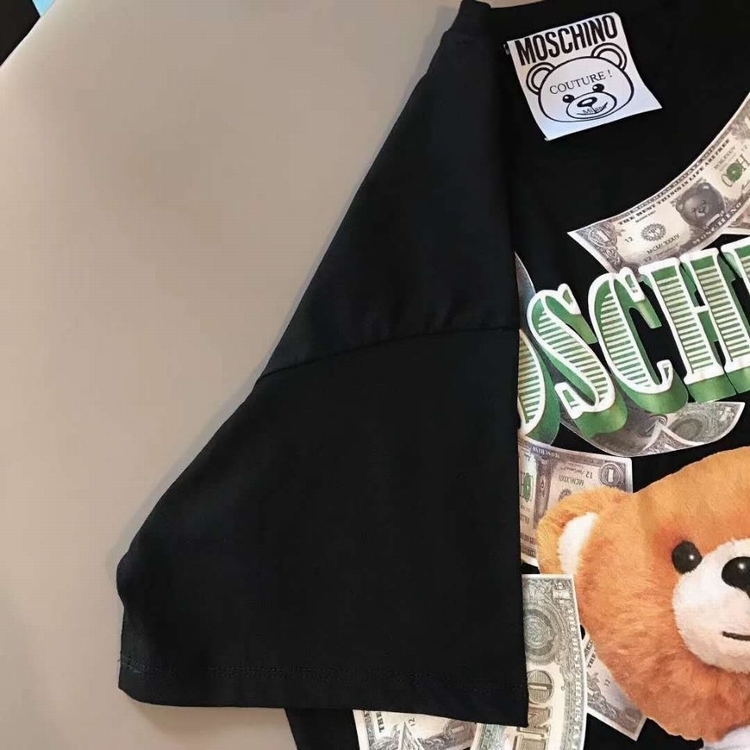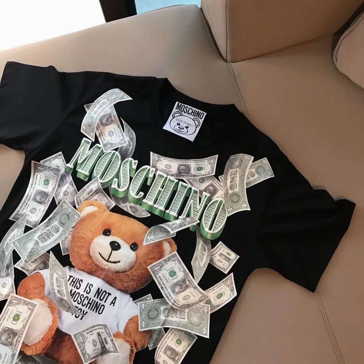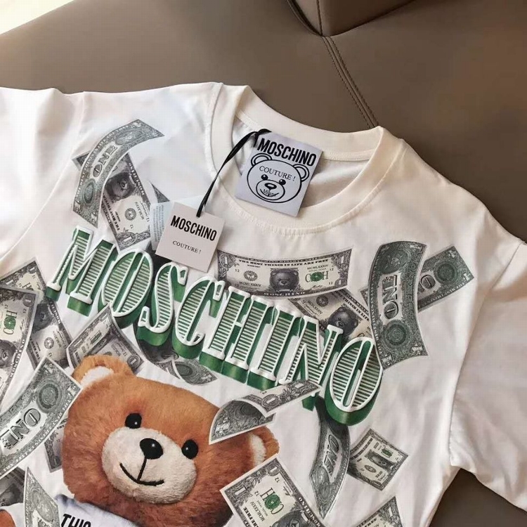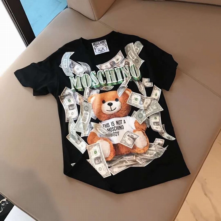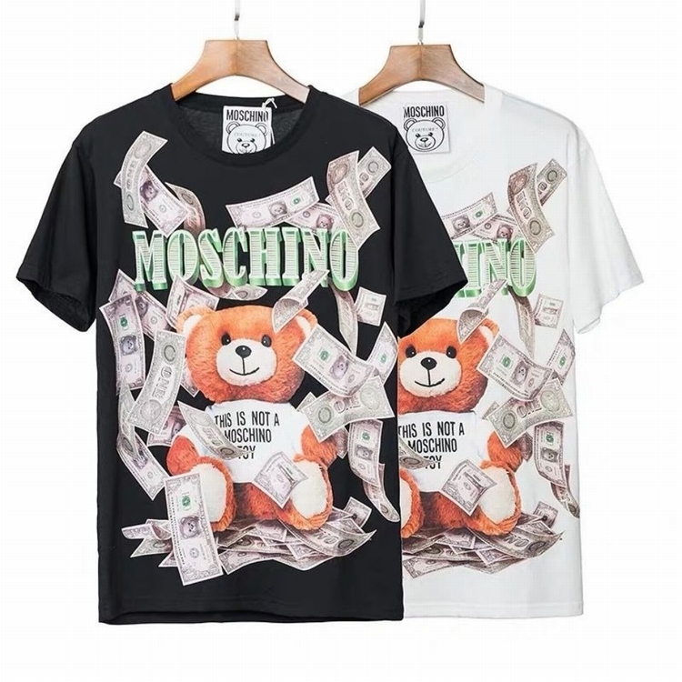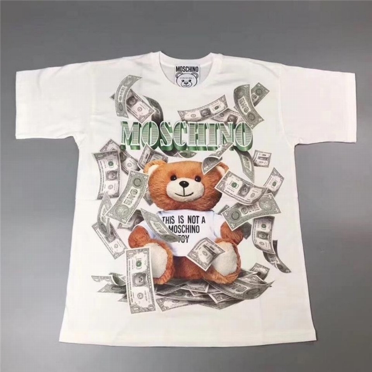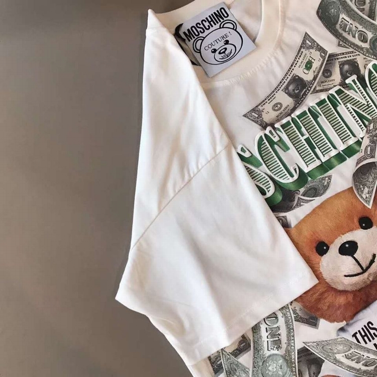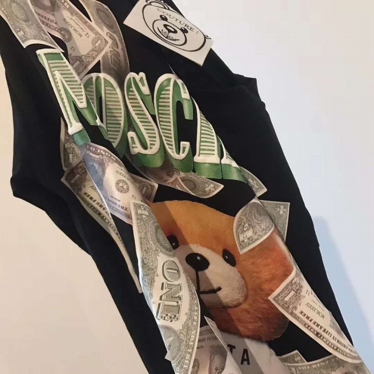 MOS系列 夏新款莫斯奇諾鈔票小熊印花短袖圓領純棉寬松情侶T恤