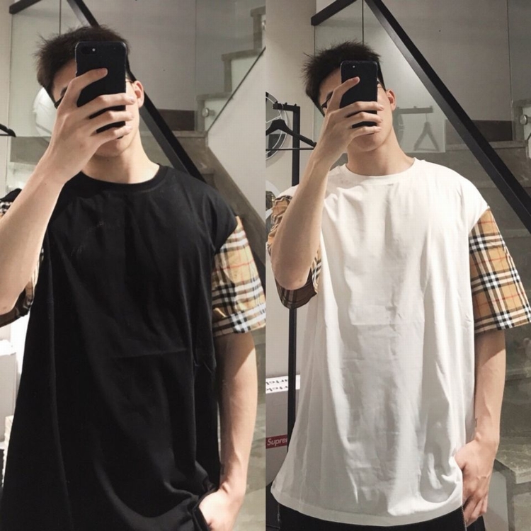 夏季新款巴寶拼接男女士純棉短袖寬松百搭顯瘦潮流情侶上衣