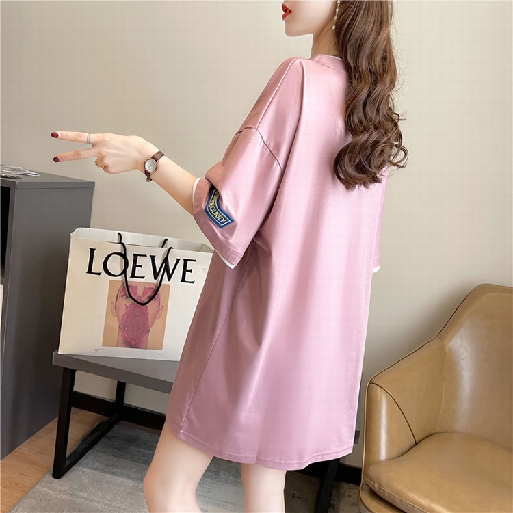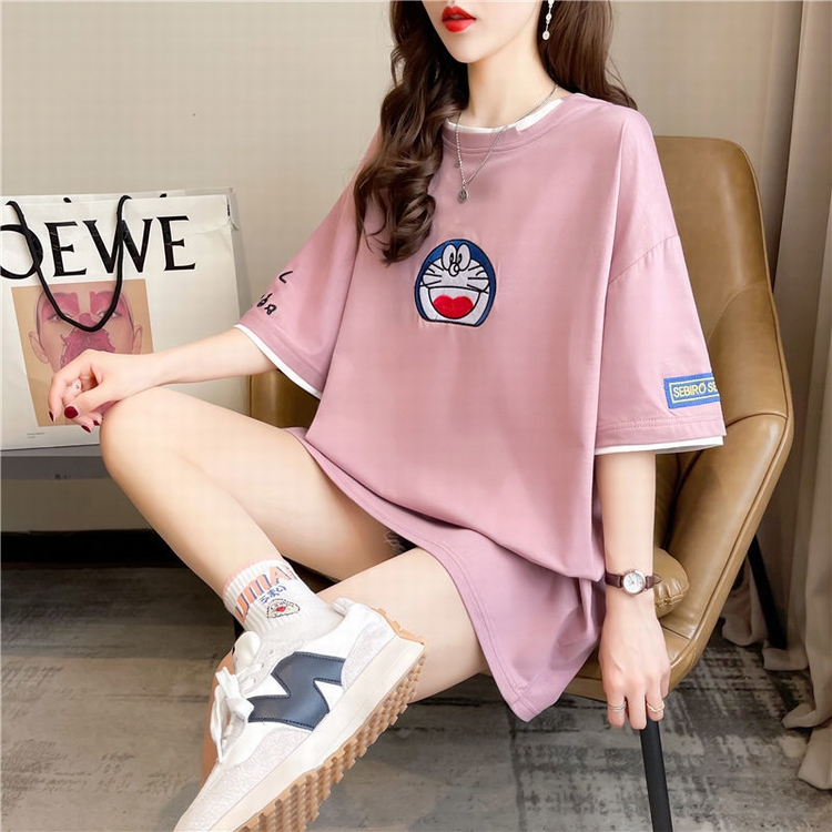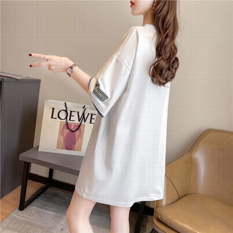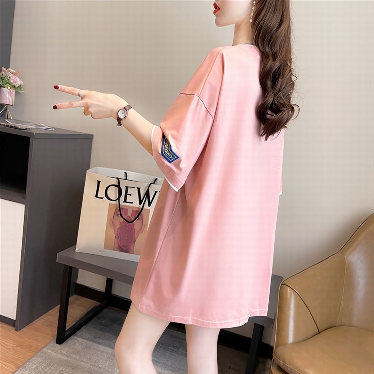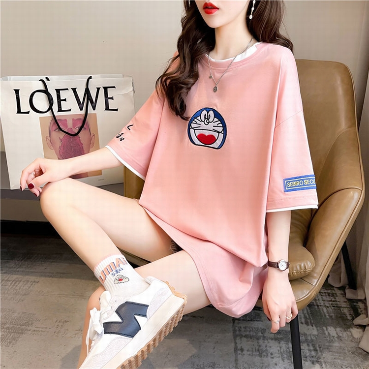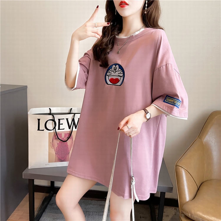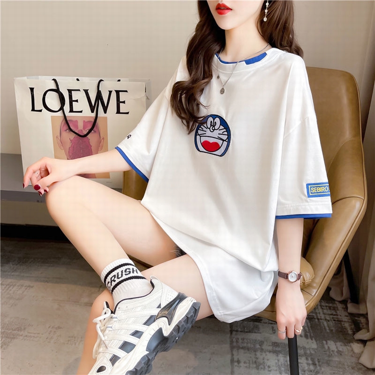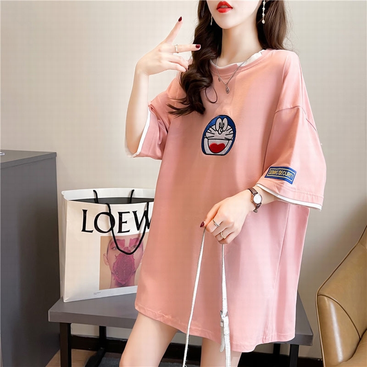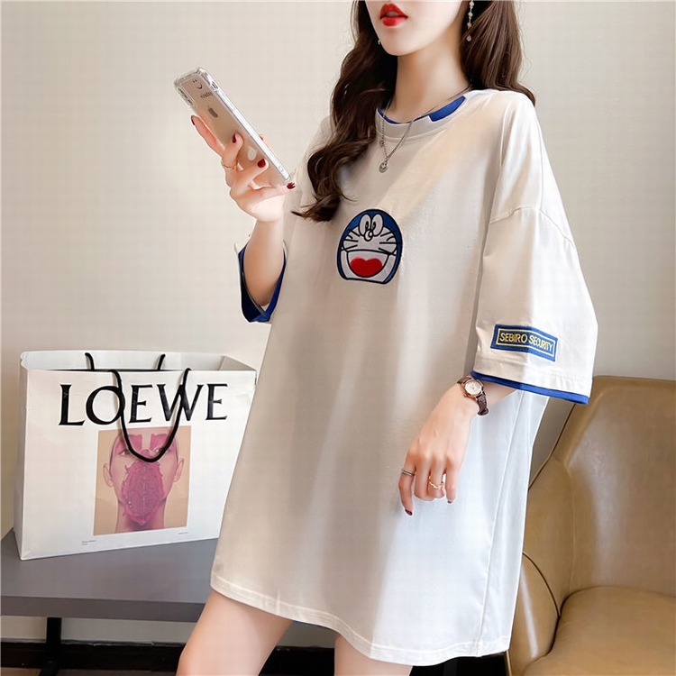 中長款短袖t恤女2021年新款刺繡寬松網紅