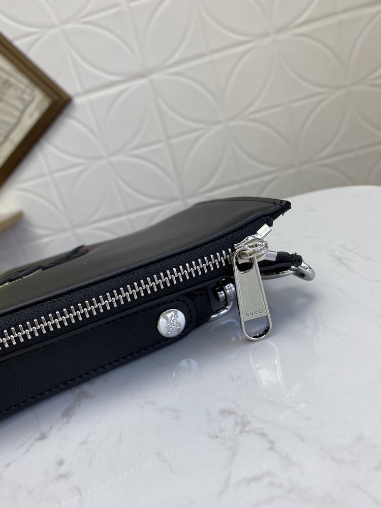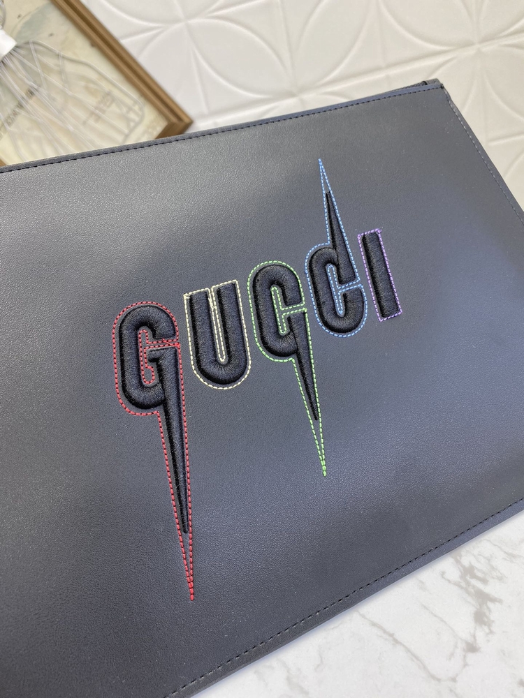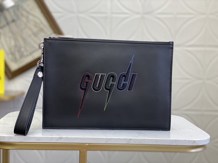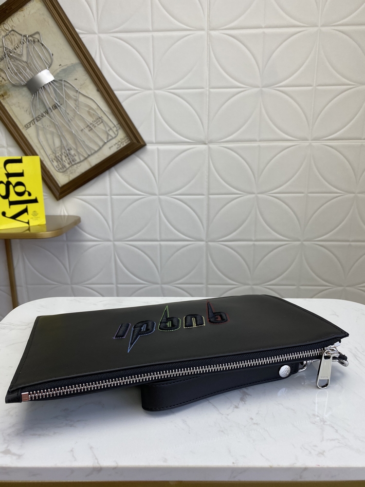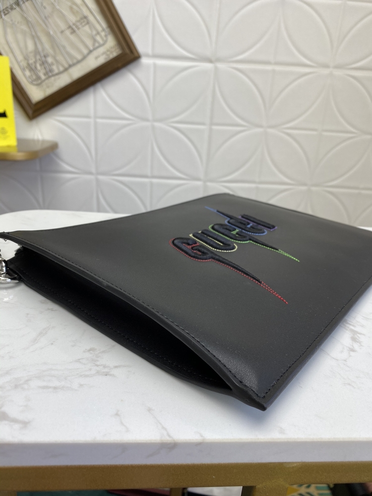 最新款手包!這款光面皮革手拿包帶有凸起壓花效果,同時裝飾G鋒刃標識刺繡圖案和彩虹色縫線飾邊。可拆卸腕帶令整體設計更添魅力!壓花鋒刃刺繡圖案六個卡片隔層,一個開口口袋可拆卸腕帶!做工精湛!尺寸:長30.5x 高21x 1.5cm!款號:597678 顏色:黑皮 號碼yd011180