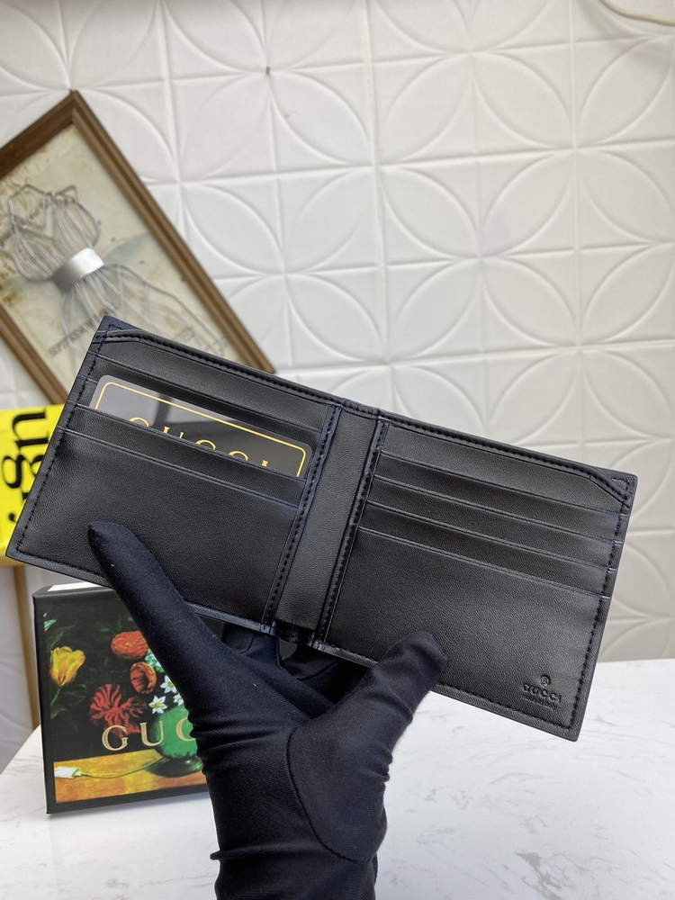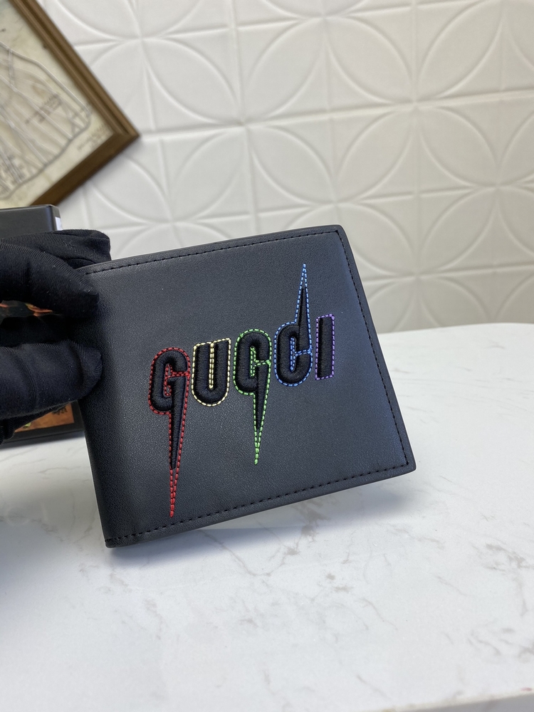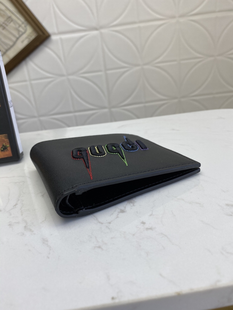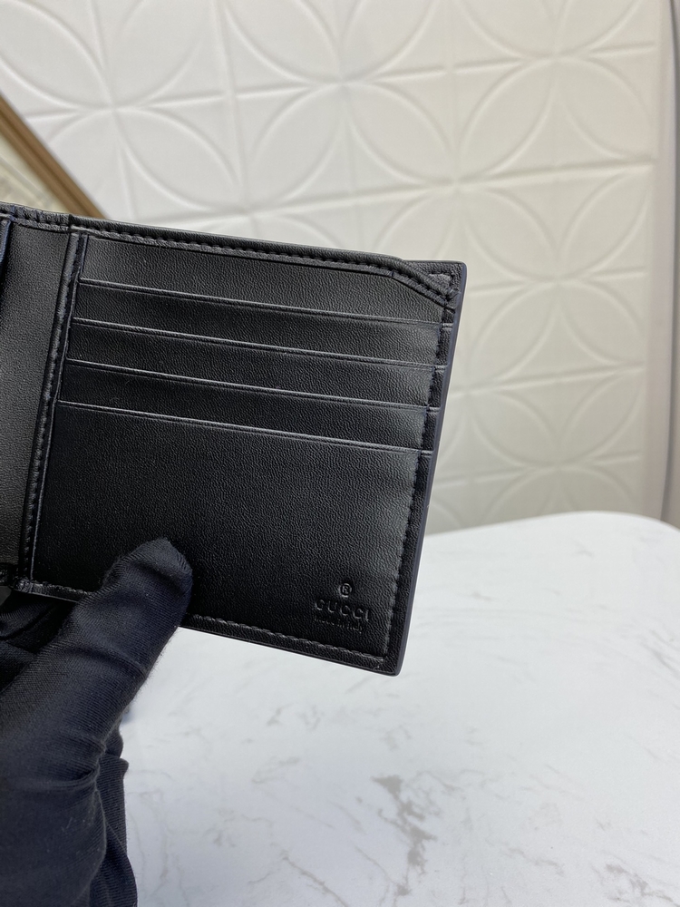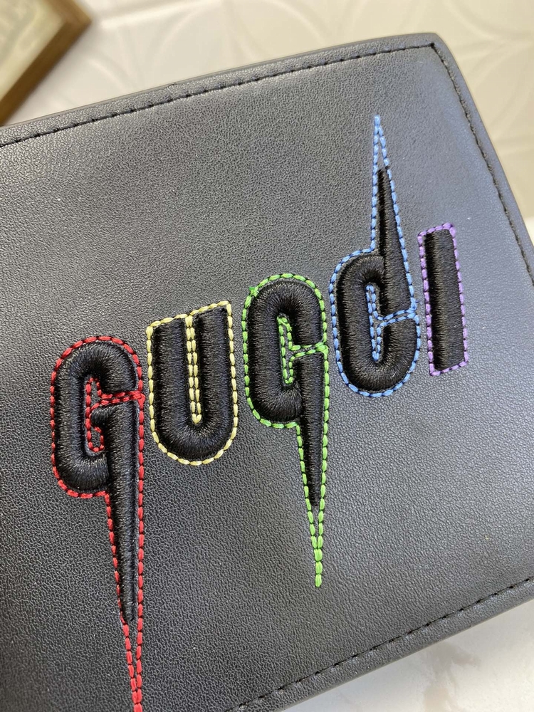 G家頂級貨品 雙折短皮夾,采用進口🐂頭層牛皮,配以品牌標誌性Gucci字母精美刺繡圖案海外頂級五金,精製而成!做工精細🏼型號:597674,顏色:黑皮,尺寸:11*9*1.5。