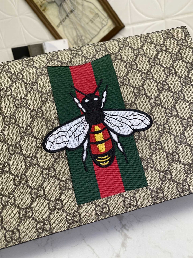 歐洲正品原單開模~Wcb系列🤡🤡GG Supreme 高級PVC防水材料配以原工廠豬紋牛皮🤡🤡高級棉布拉鏈~小虎頭拉鏈頭釘製🤡🤡強大的內格~拉鏈內袋🤡結構化時尚造型設計風格🤡🤡 型號:433665,顏色:啡/ pvc蜜蜂,尺寸:w30×h20×d4cm(配包裝盒子/布袋)