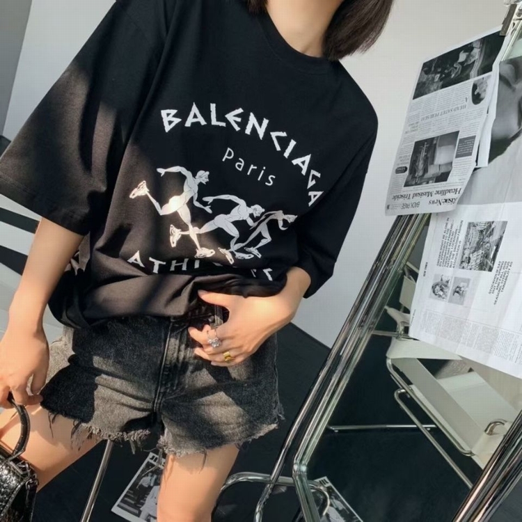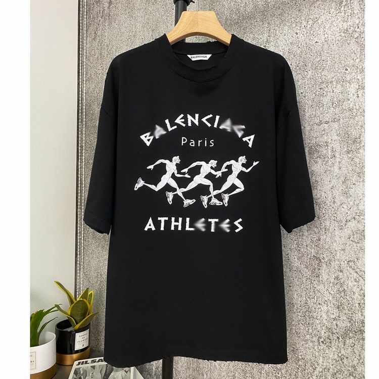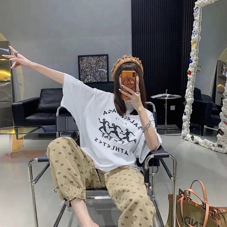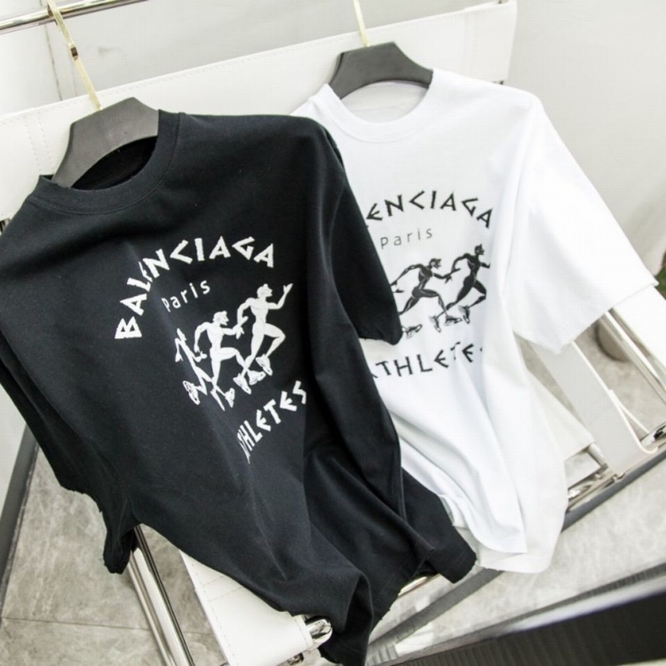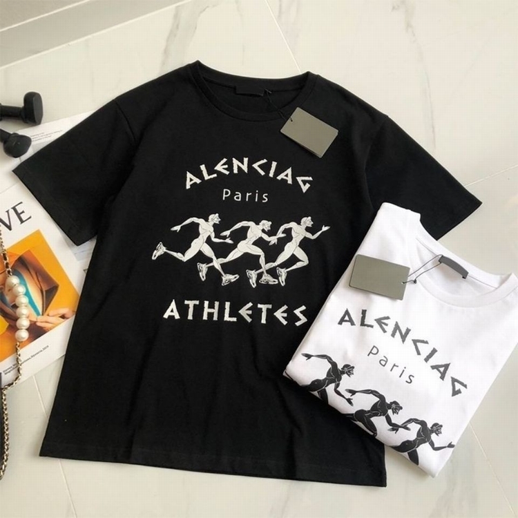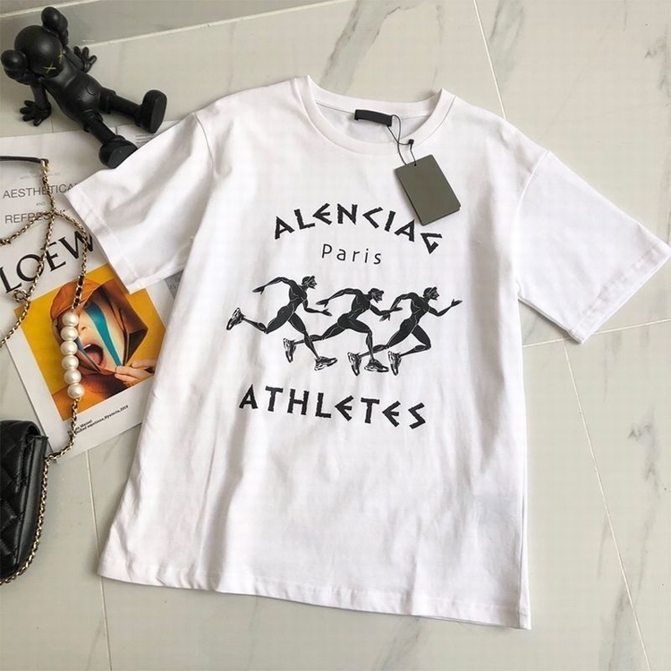 歐美2021春夏潮B家新款巴黎奔跑兄弟印花純棉短袖寬松男女同款T恤