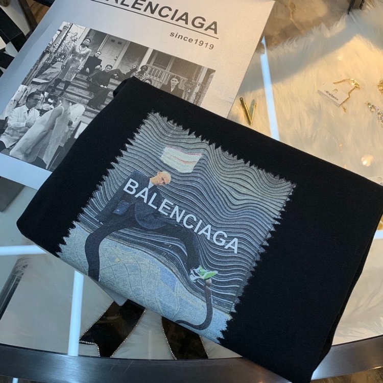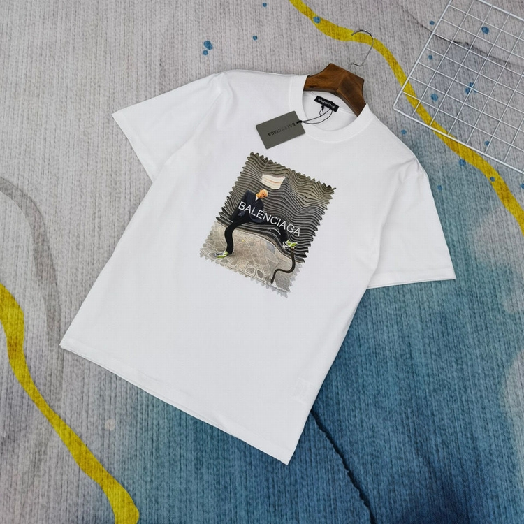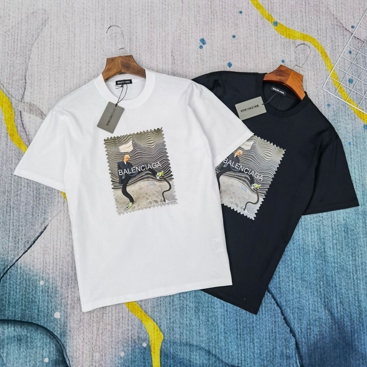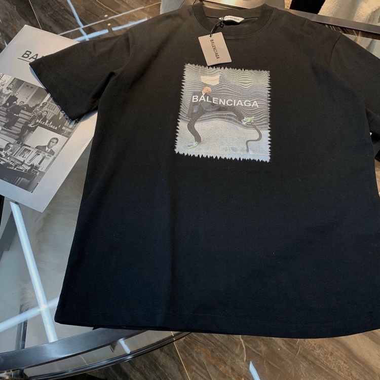 歐美春夏新款巴黎潮郵票抽象男模印花純棉短袖寬松男女同款T恤