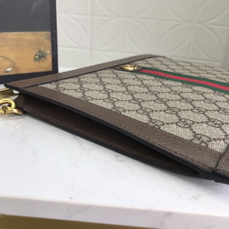 Gucci原版最新款Ophidia系列❣️采用GG Supreme高級人造帆布,配以標誌性圖案與條紋織帶,海外頂級五金精製而成,可拆卸意大利皮製腕帶! 型號: 顏色:PVC棕皮,尺寸: 30.5×21×1.5cm