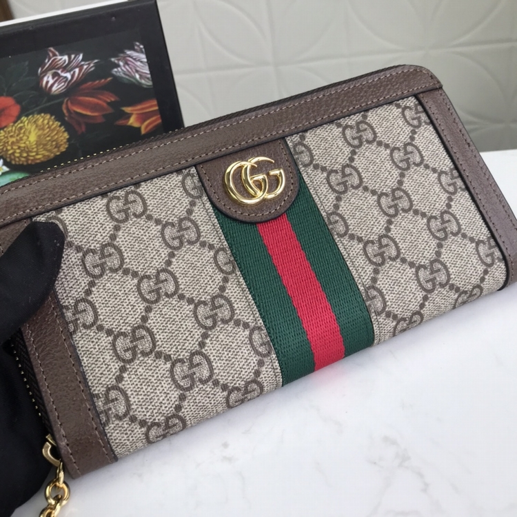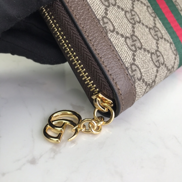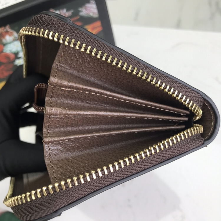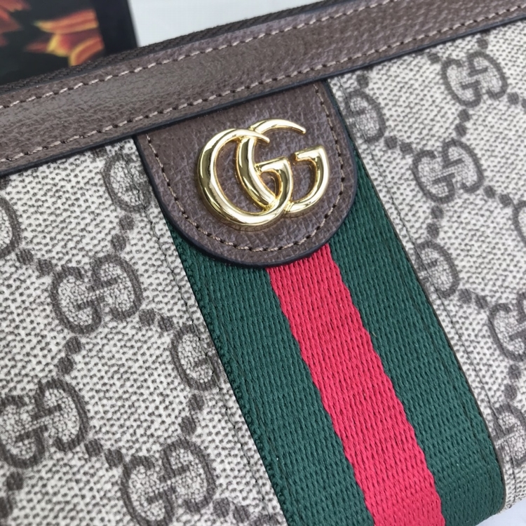Gucci款號: 523154~GUCCl經典重現於1970年代開始使用的GG標識,由始於1930年代的早期Gucci鉆石菱格紋演化而來。這款兩折包將標誌性圖案與條紋織帶相結合,這種經典搭配表現了對Gucci品牌本源。實物拍照、原版皮質、做工精細顏色:P V C啡尺寸:19*9*3