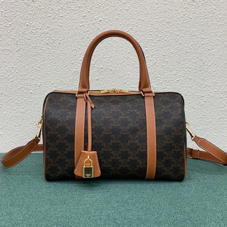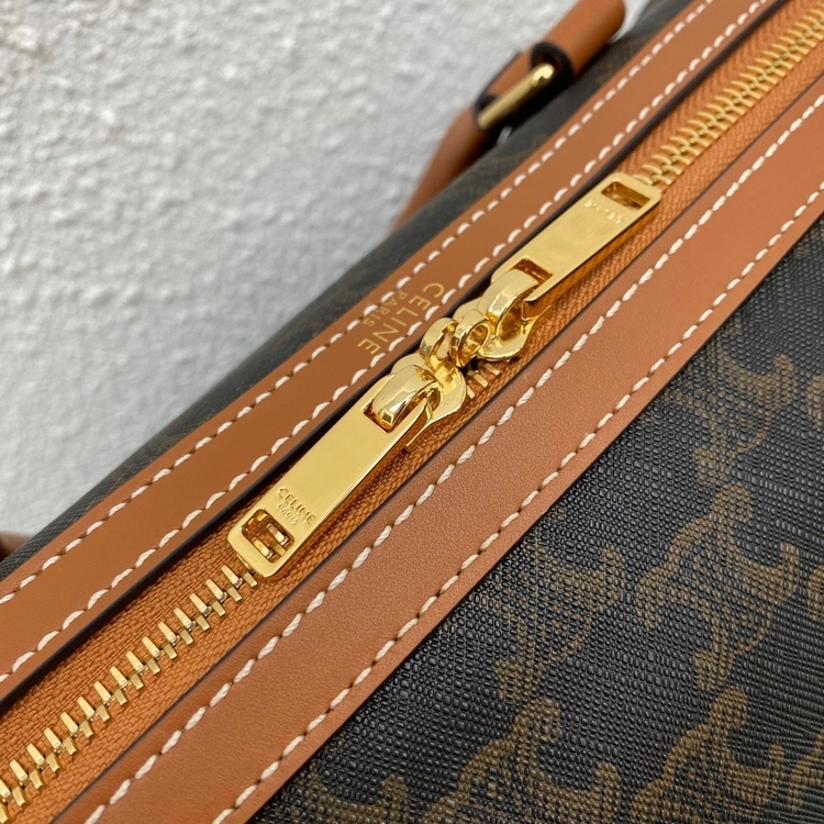 celin.e新款 TRIOMPHE帆布波士頓包 ,61%帆布,39%小牛皮,雙拉鏈,內側扁平口袋,可調節 可拆卸皮革肩帶長17英寸(43厘米),小小身材,大大容量,出行旅遊必備。