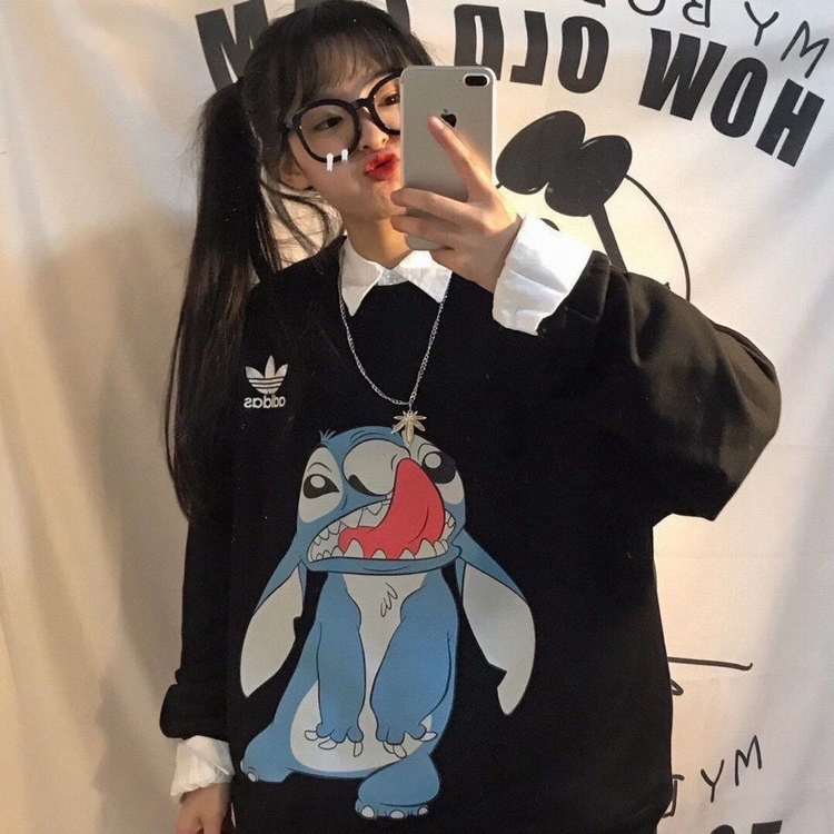 1新春秋款三葉草印花運動潮牌衛衣男女情侶圓領寬松大碼長袖