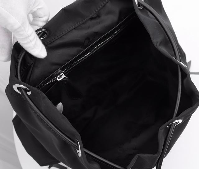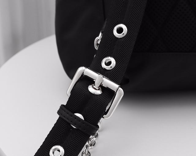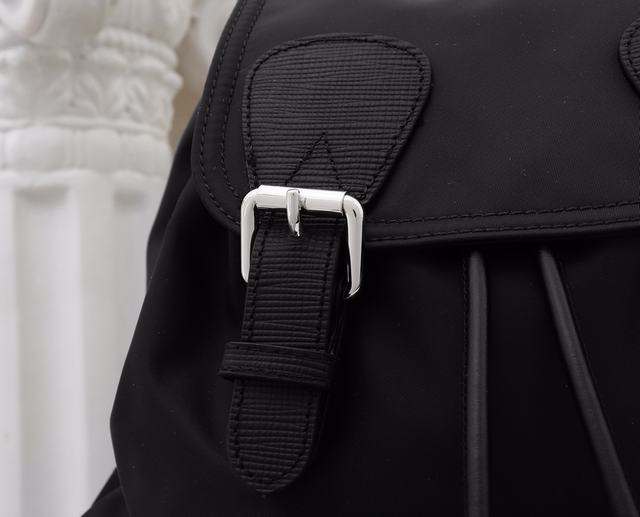 B家中号「The Rucksack 军旅背包」为时装秀主打配饰,款式轻便且防雨。肩背带采用舒适的加垫设计,并缀有精美的金属链装饰。款号8304