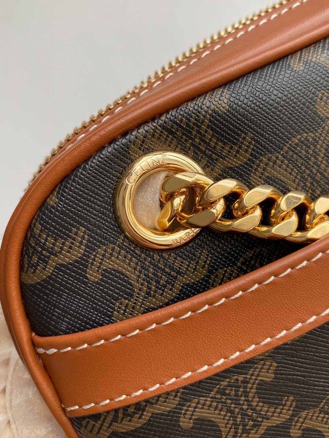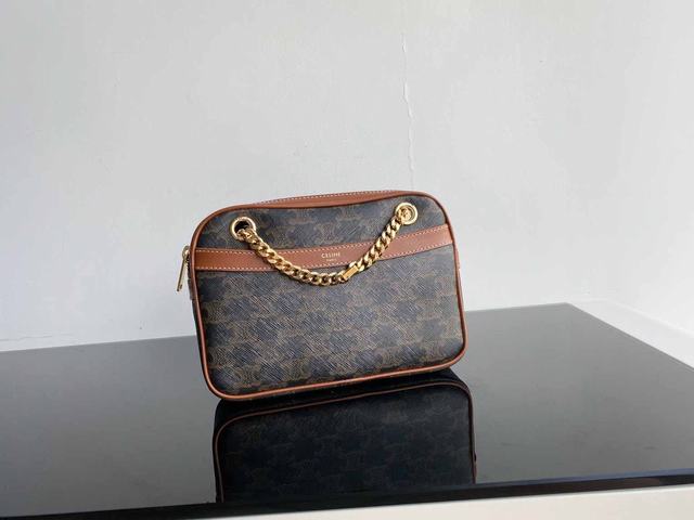 𝐢𝐧𝐞 TRIOMPHE CANVAS小號標誌印花PATAPANS手袋,中古鏈條包,️TRIOMPHE CANVAS標誌印花,牛皮革包邊,織物面料襯裡,金色金屬件,可肩背,拉鏈鎖閉,1個內側拉鏈口袋,1個外側扁平口袋尺寸:20.5X 15X 4.5cm型號:2030#號碼021220