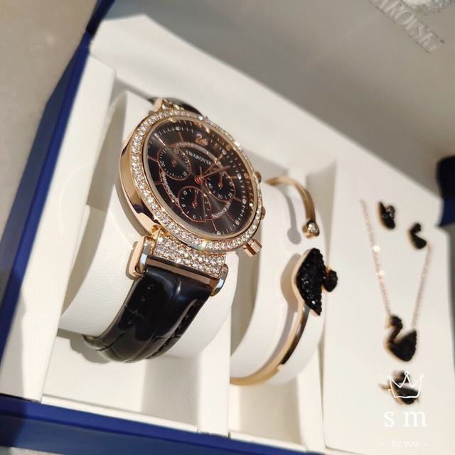 配盒 🔜 特別推出施華洛世奇 五件套官網同步 爆款🏻🏻SWAROVSKI施華洛世奇💌 三眼石英女表 表盤滿鑽設計三眼表針面與水晶鑽渾然天成,奢華不已 施華洛世奇鈦鋼五件套 【 天鵝手錶+鈦鋼天鵝手鐲+鈦鋼天鵝項鏈+鈦鋼天鵝耳釘+鈦鋼天鵝戒指 】‼ 全套禮盒包裝 送禮首選💕 ️💕💕 🔷號碼511265