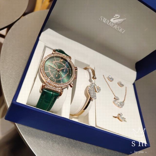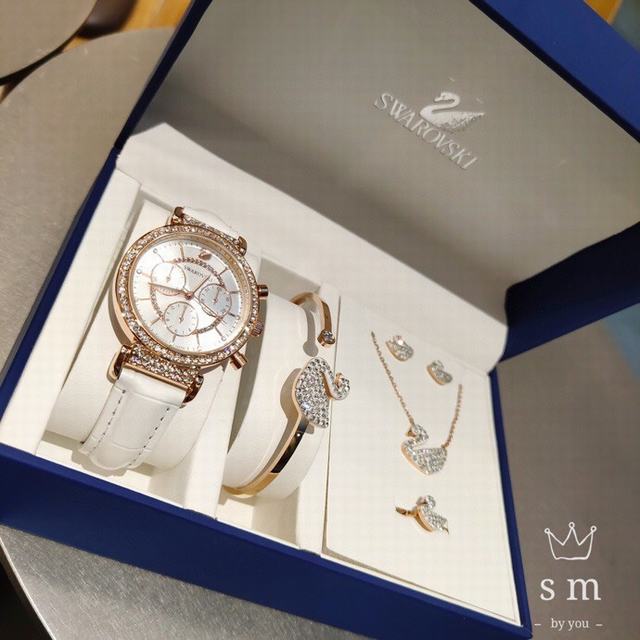 配盒 🔜 特別推出施華洛世奇 五件套官網同步 爆款🏻🏻SWAROVSKI施華洛世奇💌 三眼石英女表 表盤滿鑽設計三眼表針面與水晶鑽渾然天成,奢華不已 施華洛世奇鈦鋼五件套 【 天鵝手錶+鈦鋼天鵝手鐲+鈦鋼天鵝項鏈+鈦鋼天鵝耳釘+鈦鋼天鵝戒指 】‼  全套禮盒包裝 送禮首選💕 ️💕💕 🔷號碼511265