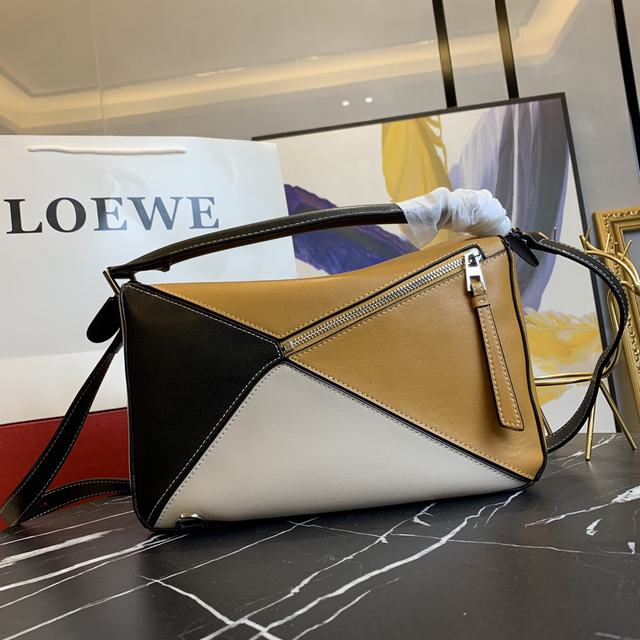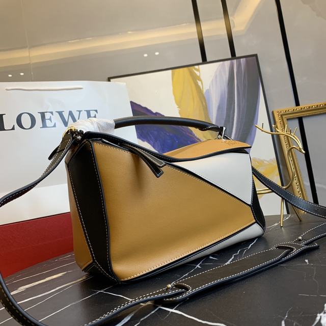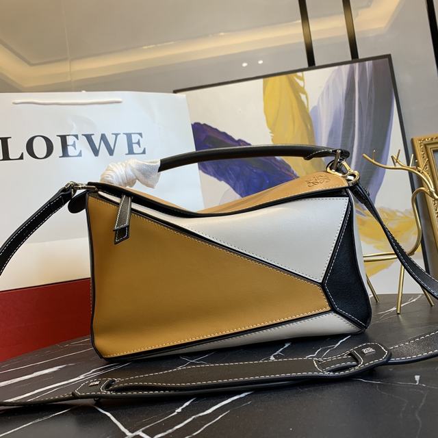 拼色大号450【品质升级包型做工升级】原版升级品质,火遍全世界的热销款💫Loe@e/罗@威:款号大 L0153,店主自留款哦,送礼佳品今年时装周的It bag界杀入一匹黑马 loe@e puzzle large bag.爆红的puzzle bag 一推出就被时尚杂志和时尚网站迫不及待封为It bag,时装精们也纷纷迫不及待的想拥有它!欧洲正品购入复制开模!采用进口胎牛皮🐂,配官方特定: 对版白钢五金内置专柜代购条码271101<认准哦>🔺多种背法,可折叠这是这款包最抢眼的地方哦!出行旅游都方便极啦尺寸:大号30*19*13CM   號碼b053450