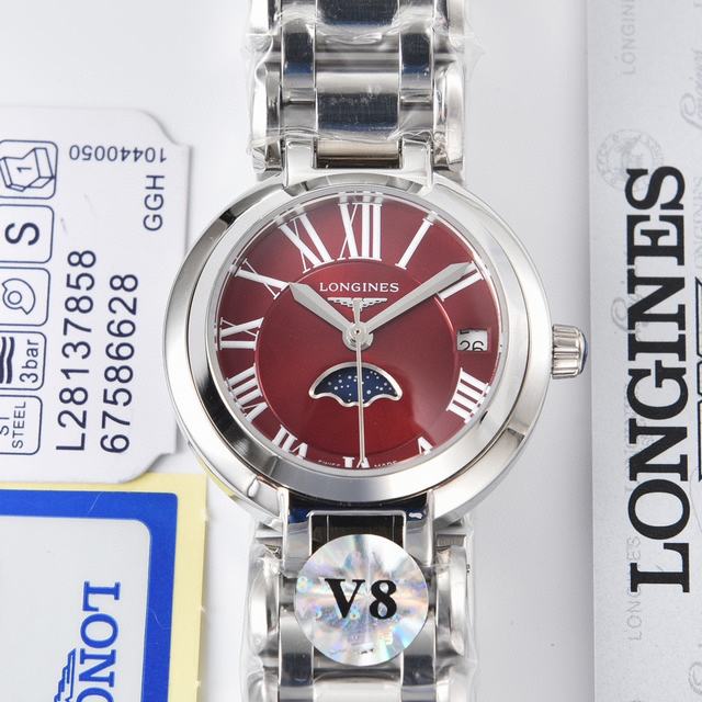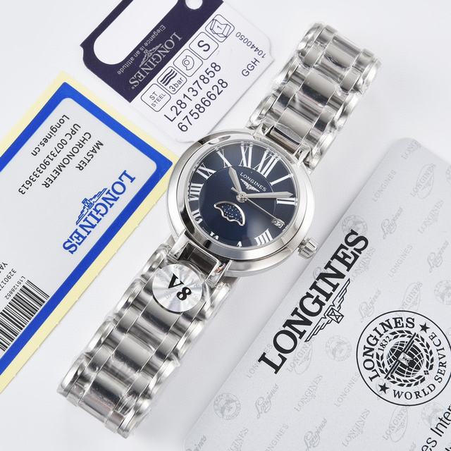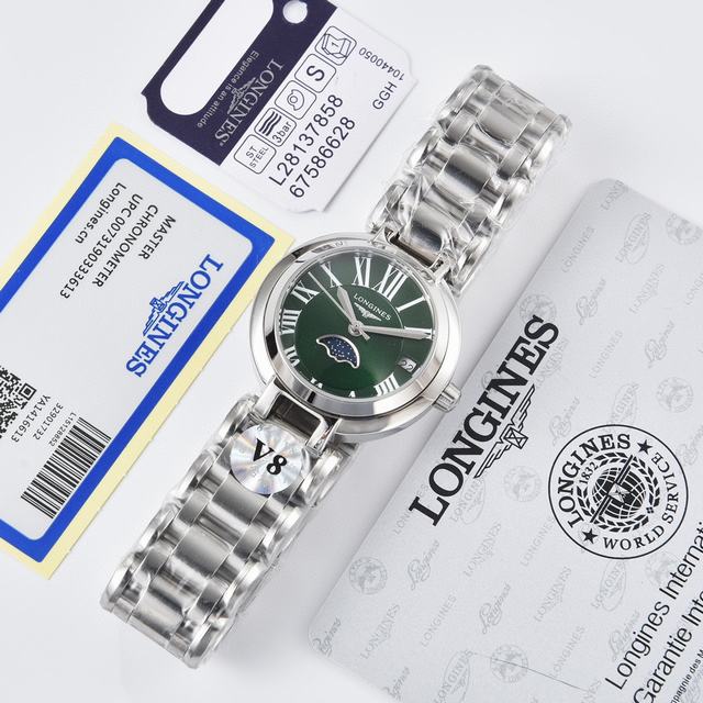 趙麗穎同款 傾情代言2022心月月相最新款出貨380 金400 鑽➕20 v8台灣廠 爆款Longines浪琴 心月系列石英表手錶女簡約氣質 !腕表底蓋-吊牌-保卡 三碼合一 1:1品質 超高性價比、真月相一個月走一圈機芯:進口石英機芯 走時準確玻璃:抗磨損合成雙卜藍寶石(數據同步正品)表殼:316精鋼圓形、3件套表殼字面:羅馬面、A級深海珍珠貝殼 表帶:精鋼表鏈搭配原裝三折式表扣。 進口小牛皮 號碼022380表殼尺寸:寬度 30.5mm 三碼合一認準編號67586628